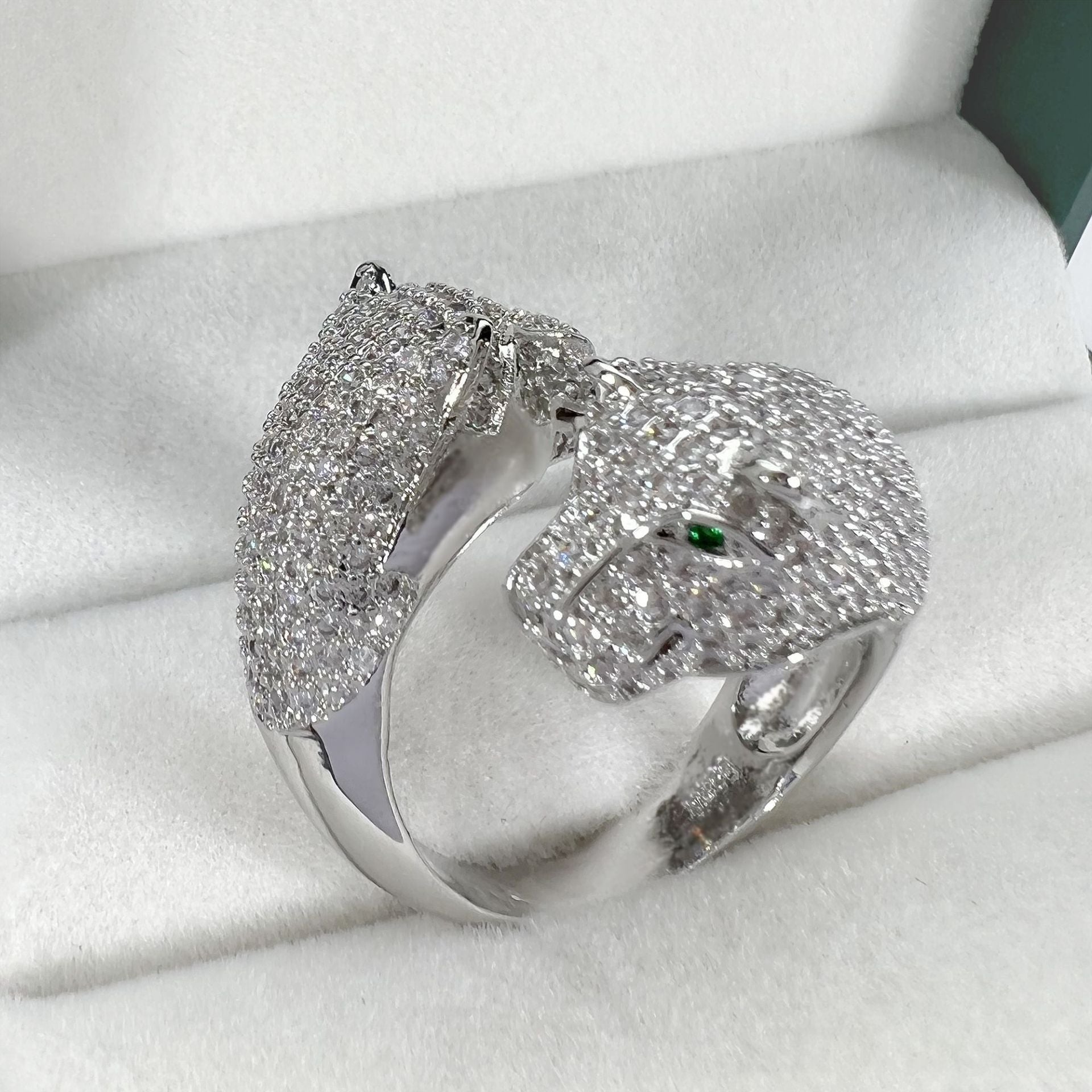 Doppelte Leopardenkopf-Tierringe mit offenem, übertriebenem Design