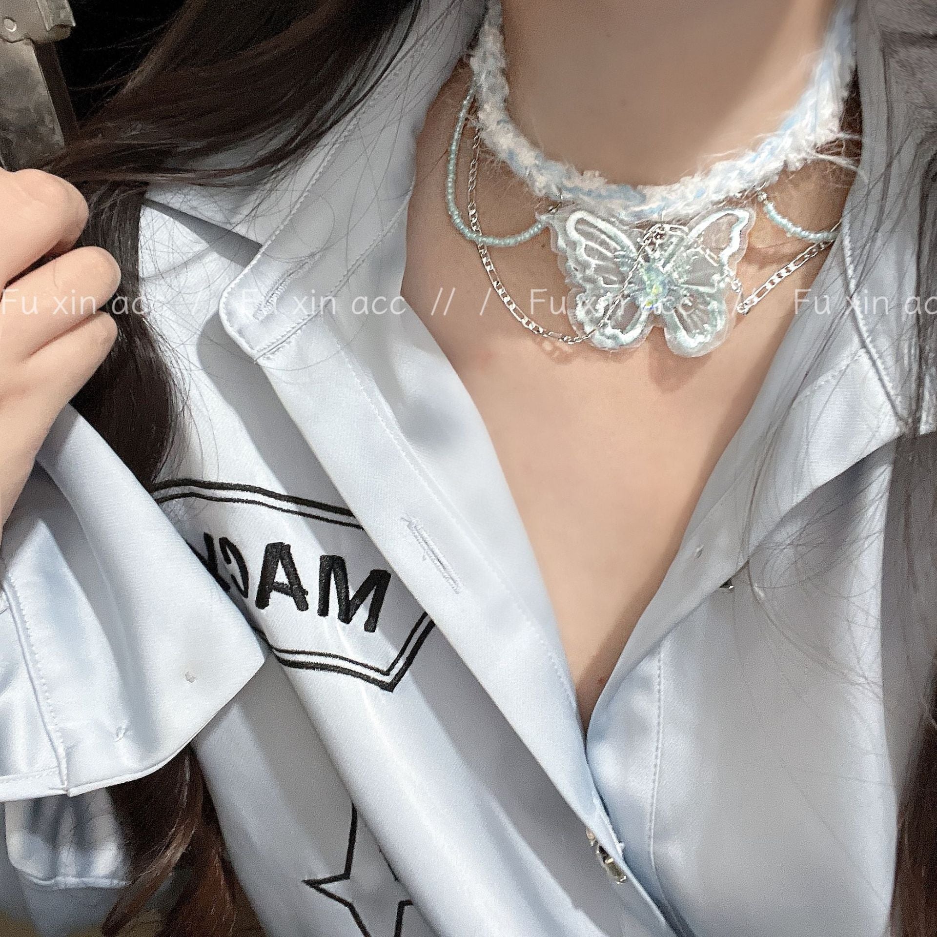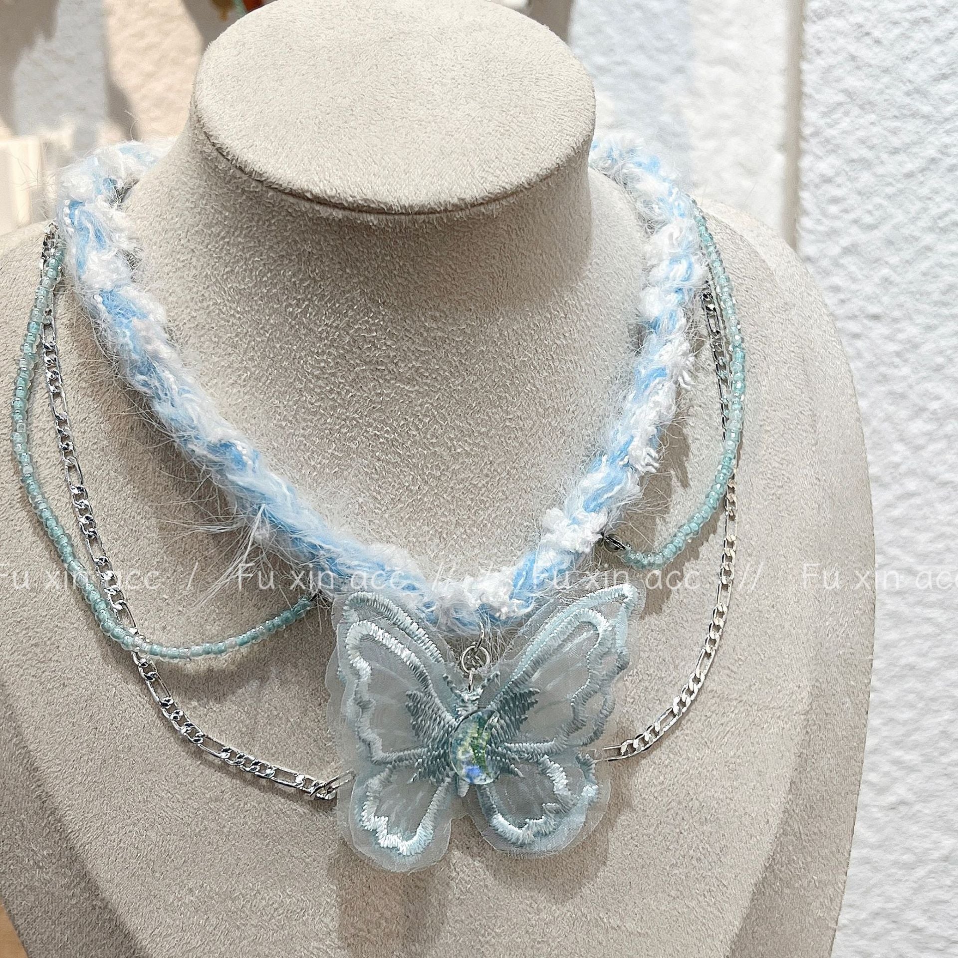 Melancholische gestrickte Plüsch-Schmetterlings-Anhänger-Nischen-Schlüsselbeinketten-Halsketten