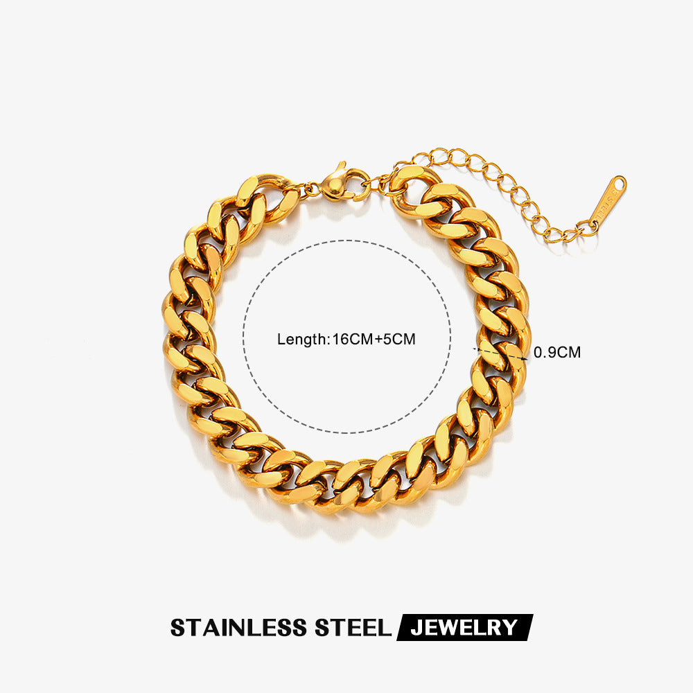 Kubanische Gliederkette für Damen mit zwei vergoldeten Armbändern