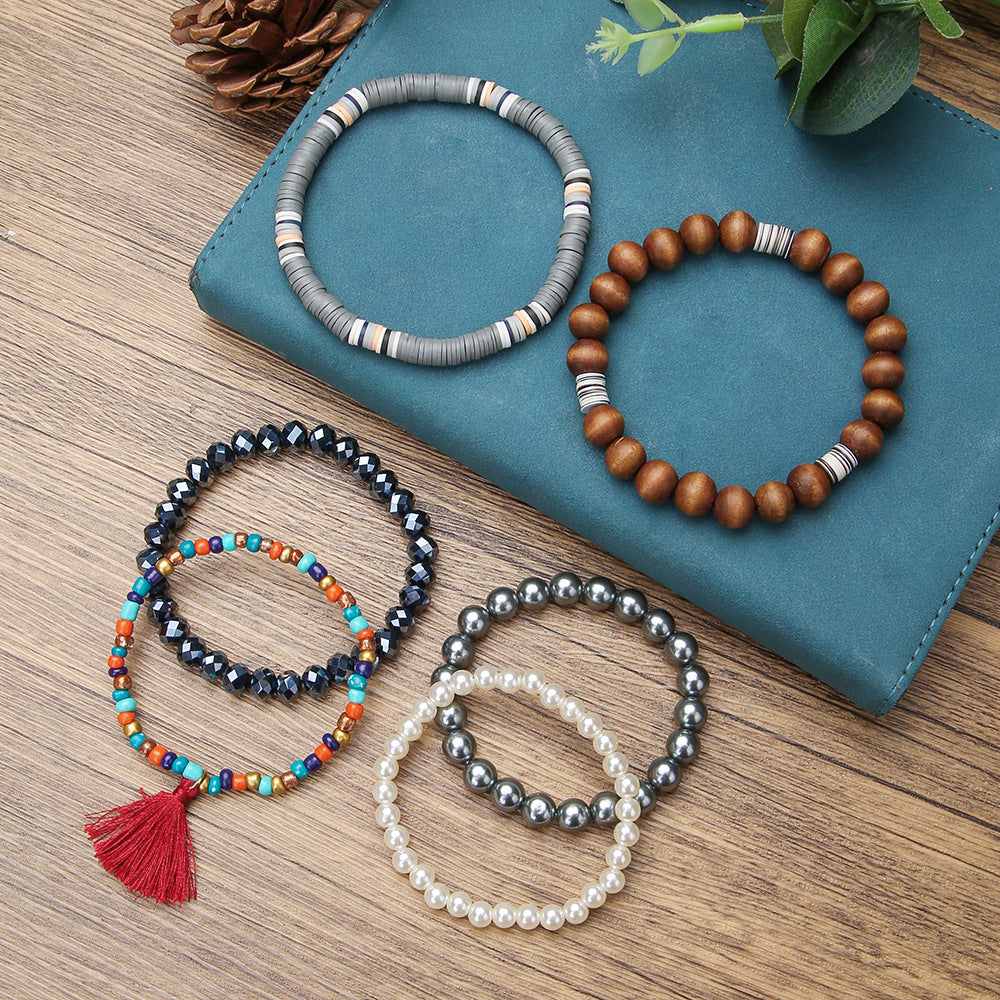 Bohemian Micro Glass Bead Wooden Pearl Bracelets