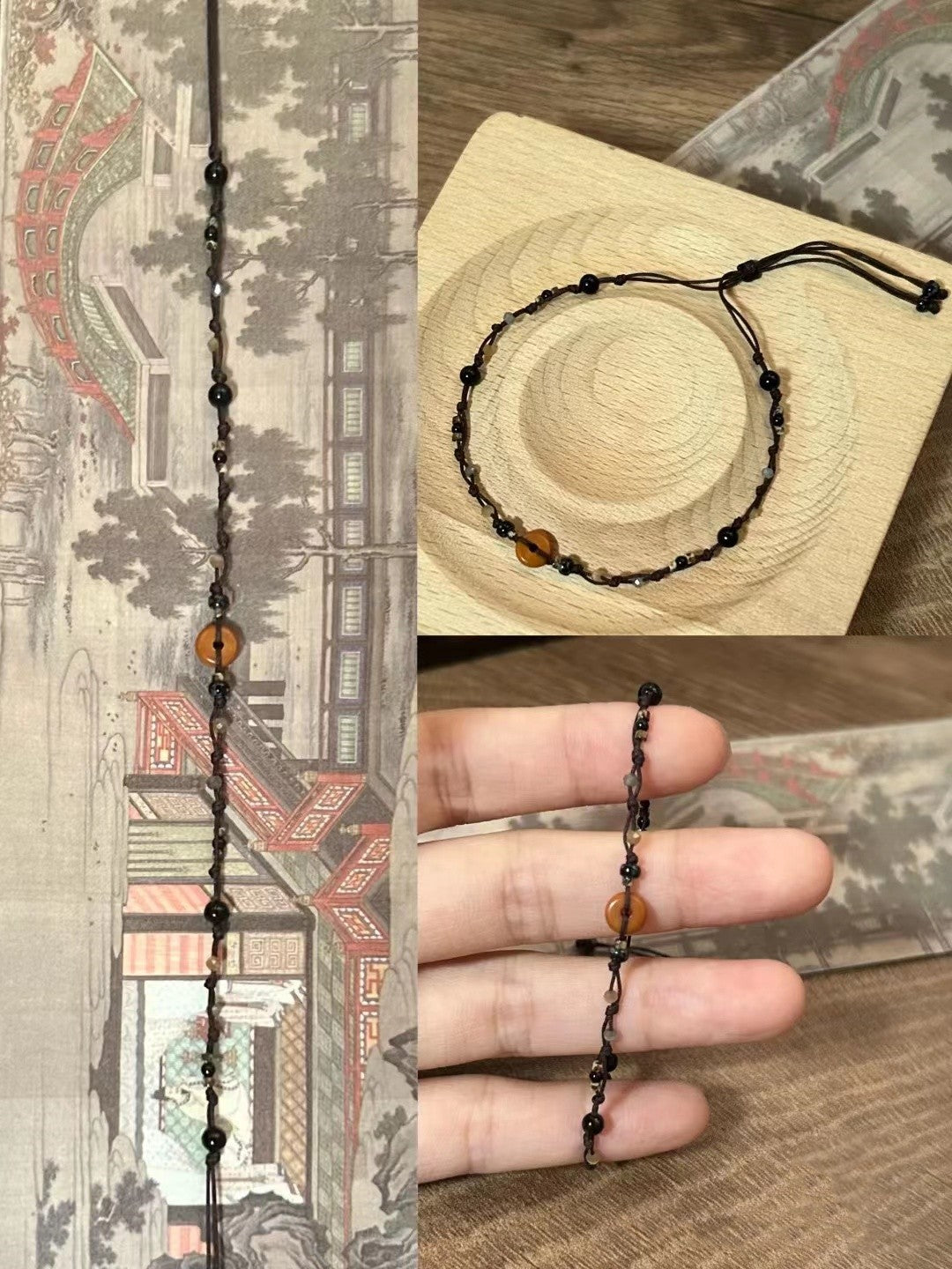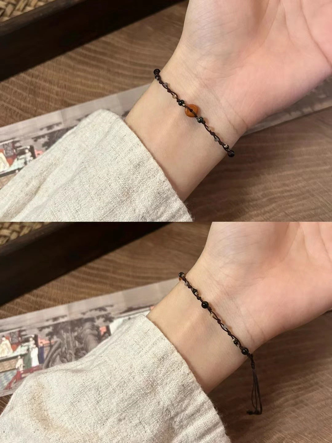 Chinese Peace Buckle Agate Hand-knitted Rope Four Bracelets