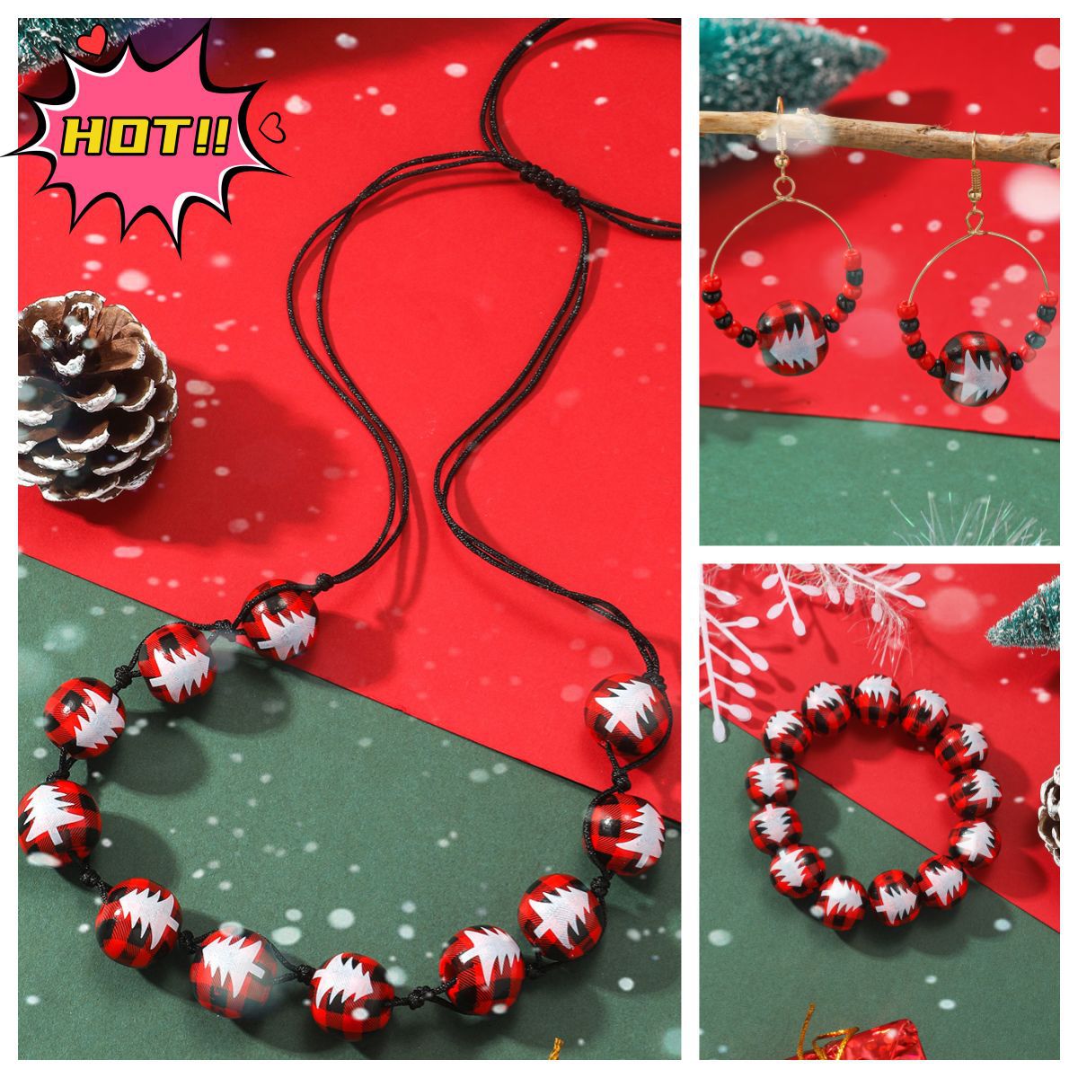 Christmas Creative Trendy Personality Tree Printing Wooden Necklaces