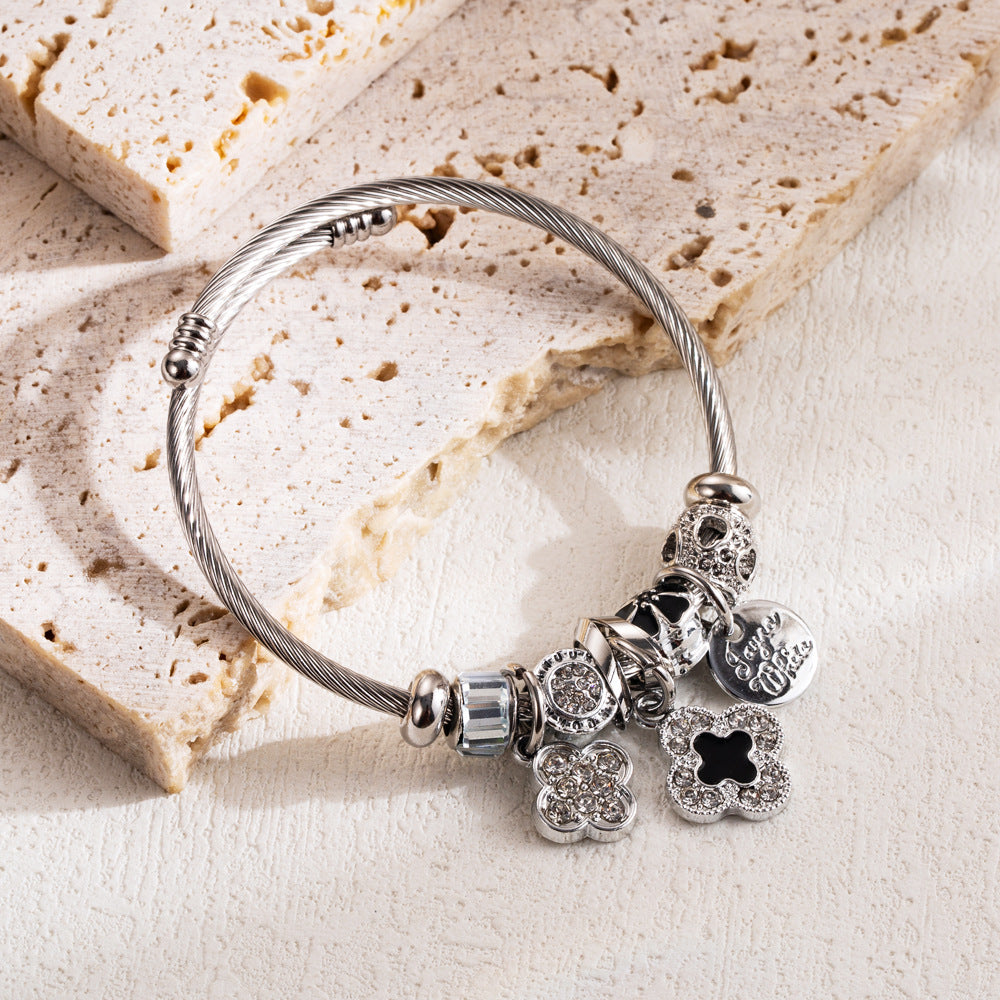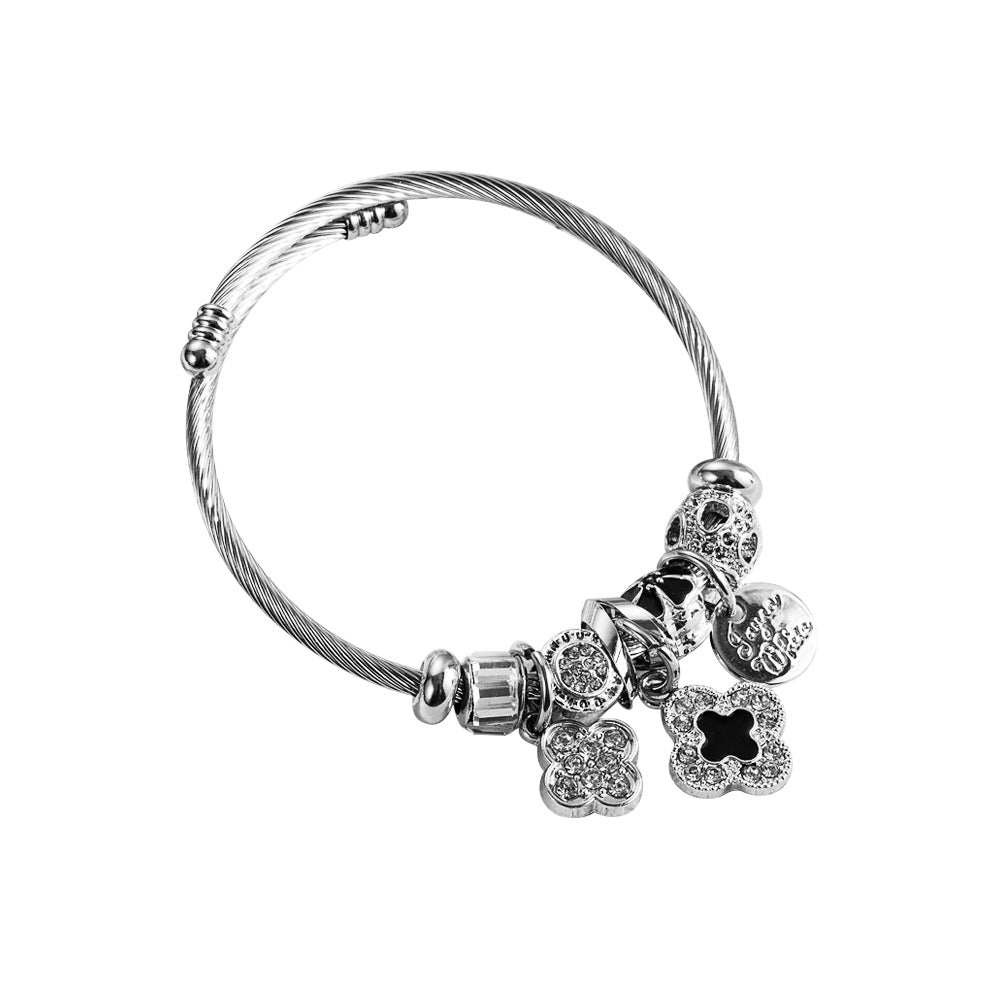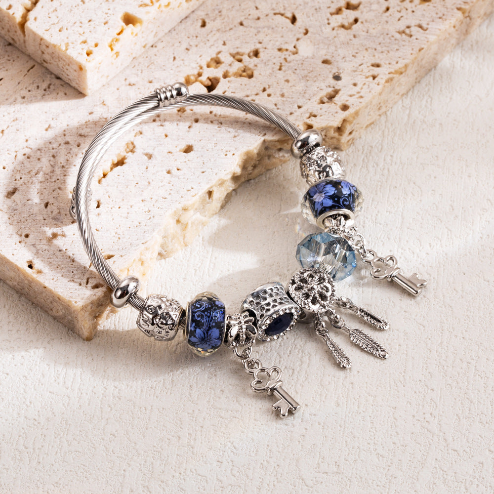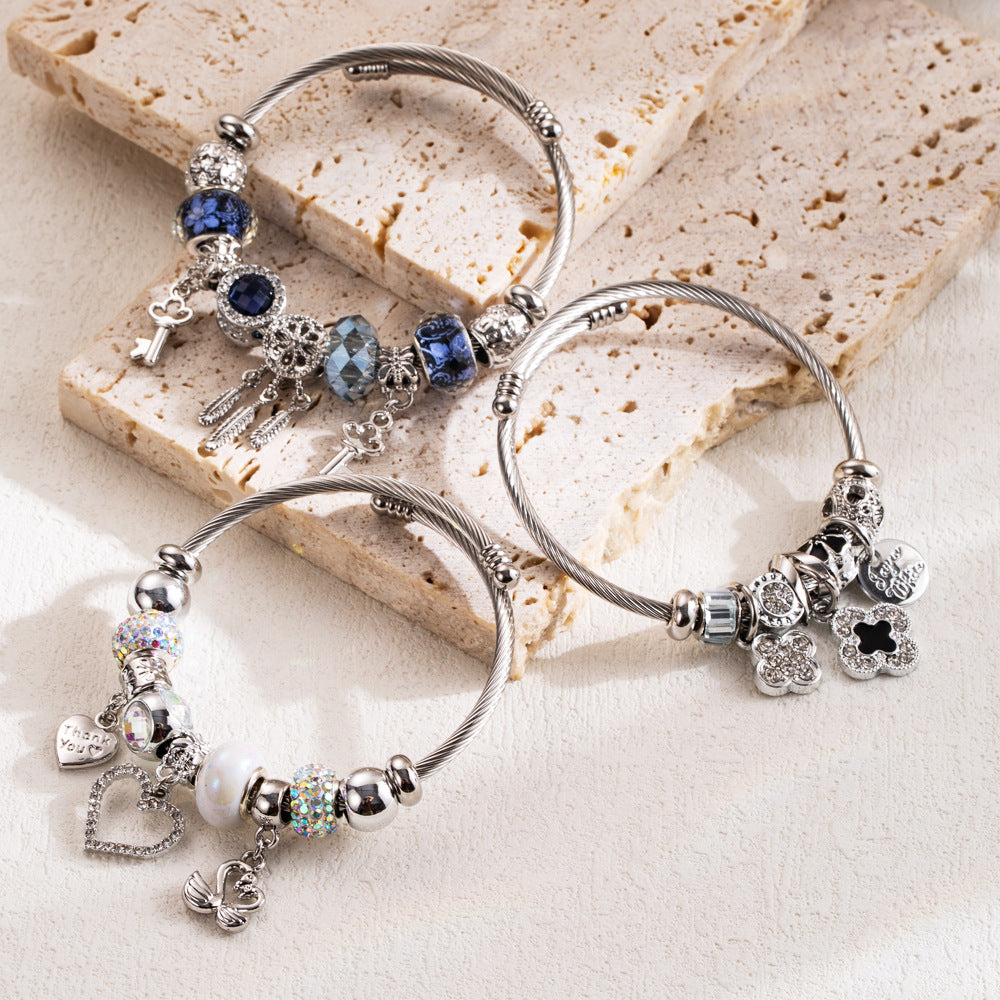 Diamond Inlaid Key Flower Love Pendant Bracelets