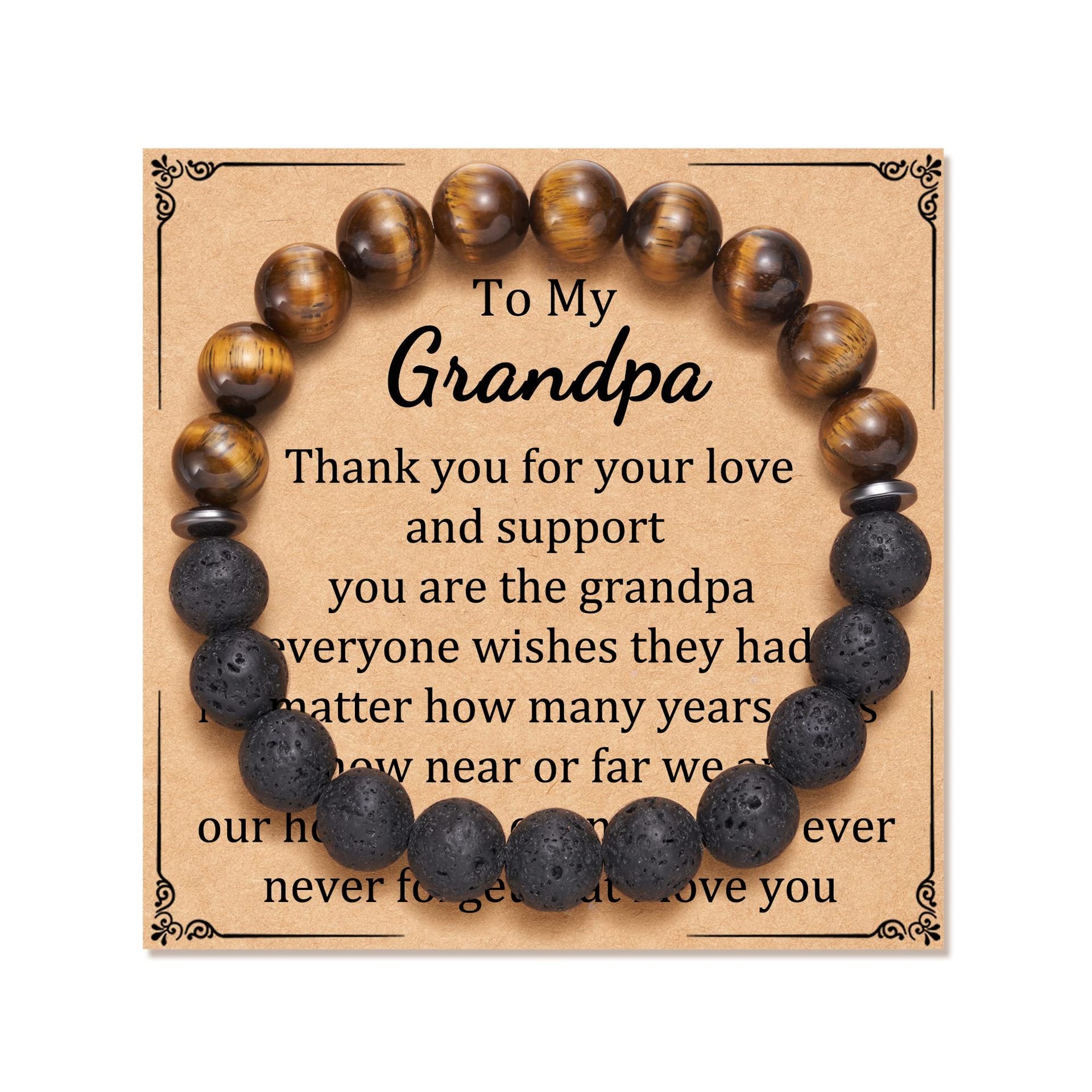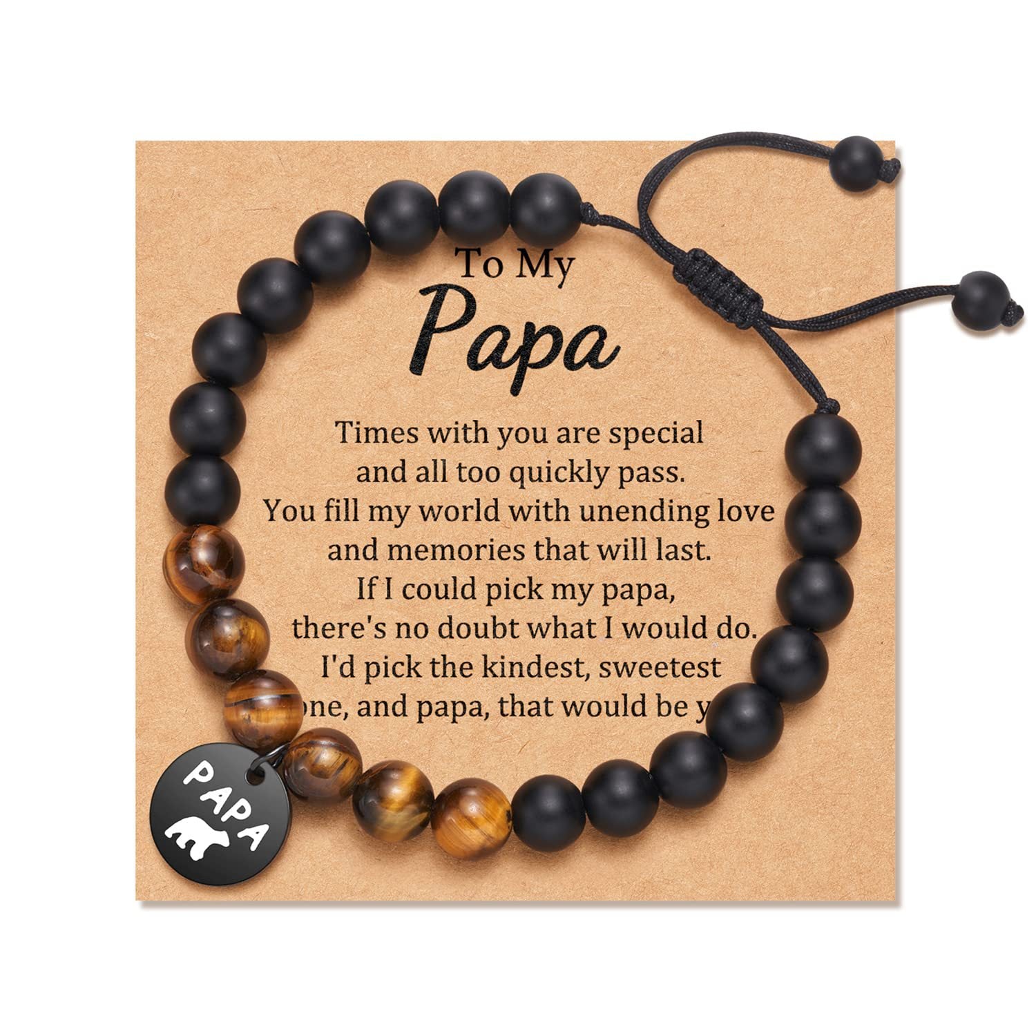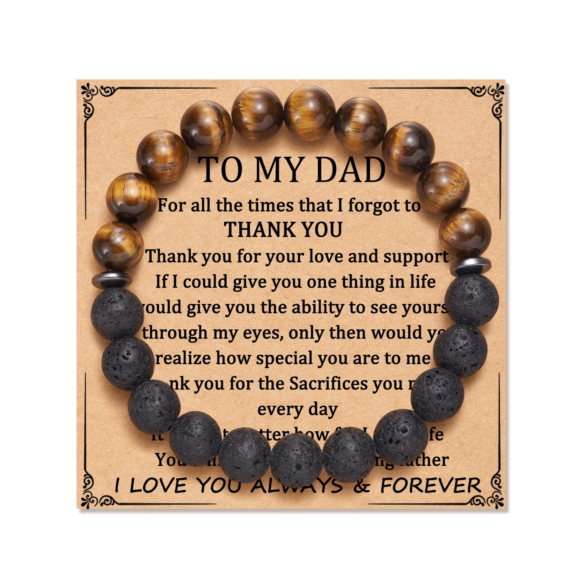 Father Gift Frosted Black Volcanic Rock Adjustable Bracelets