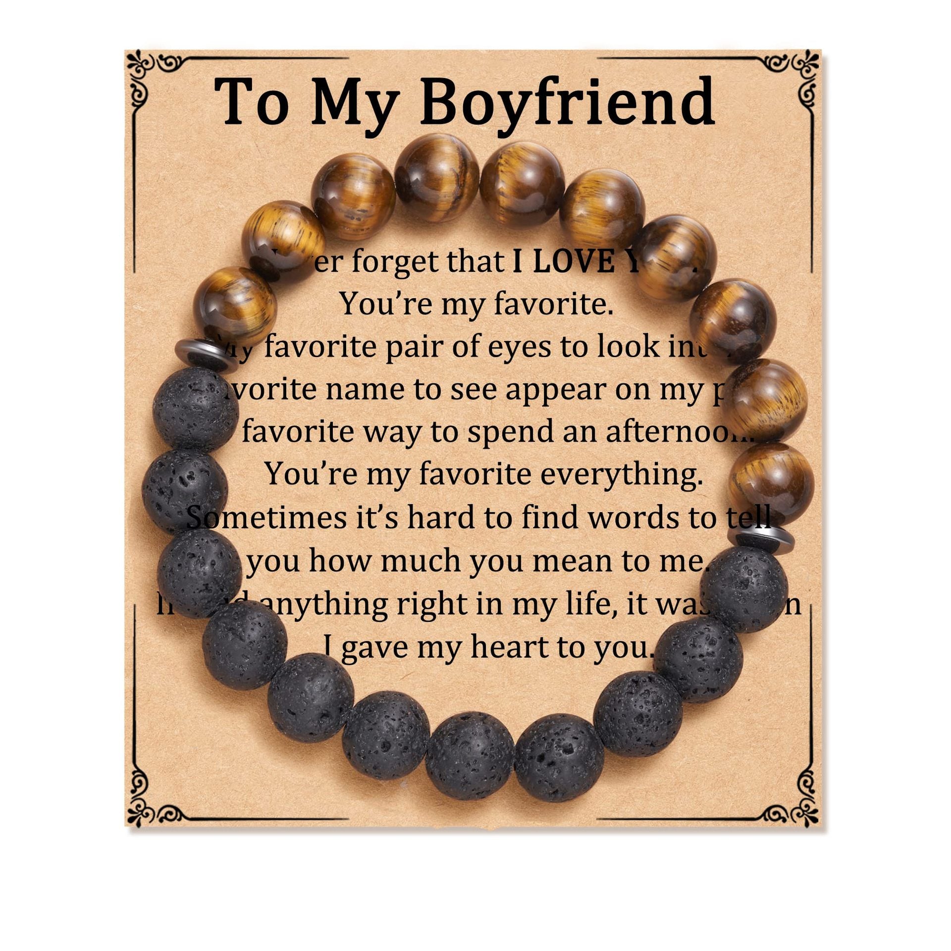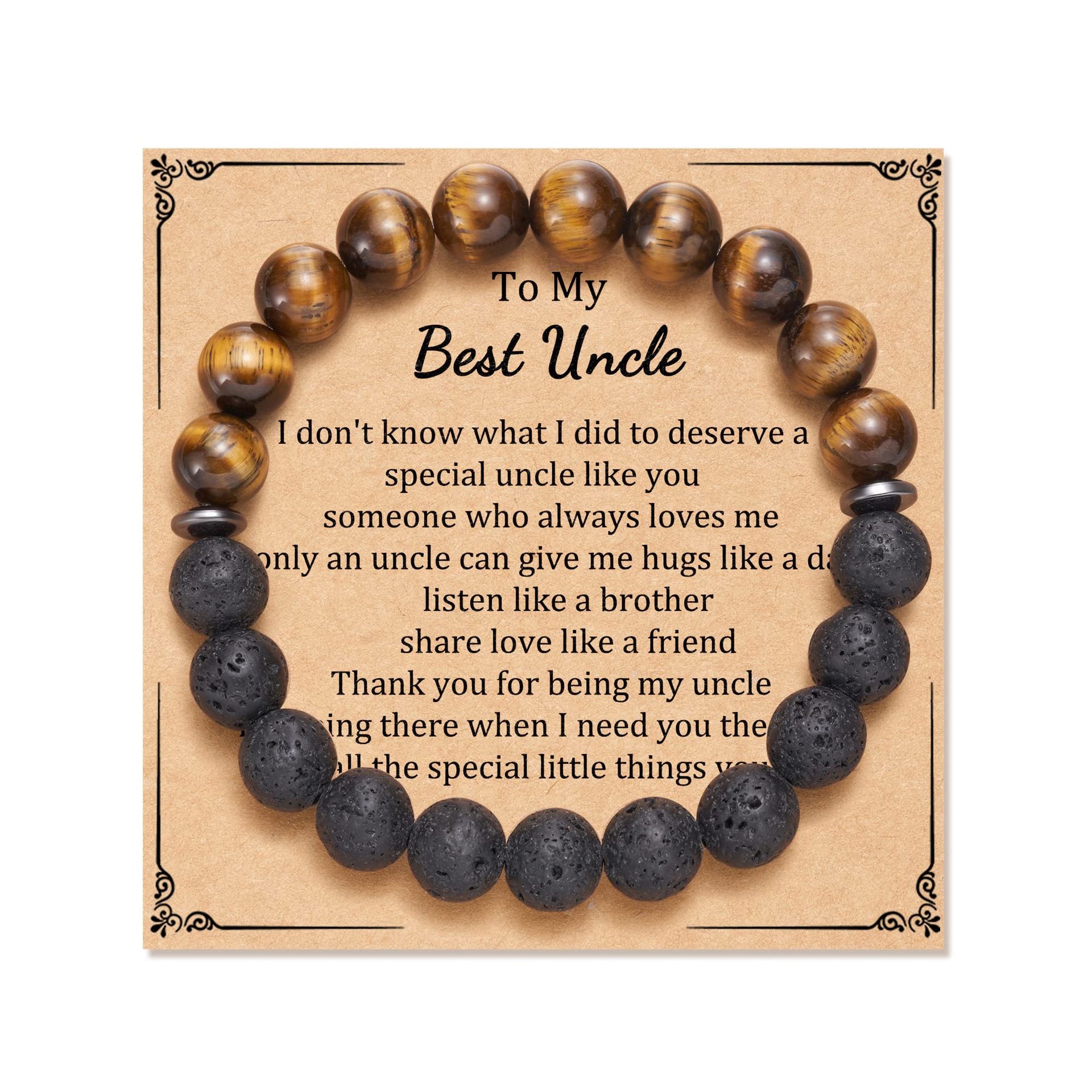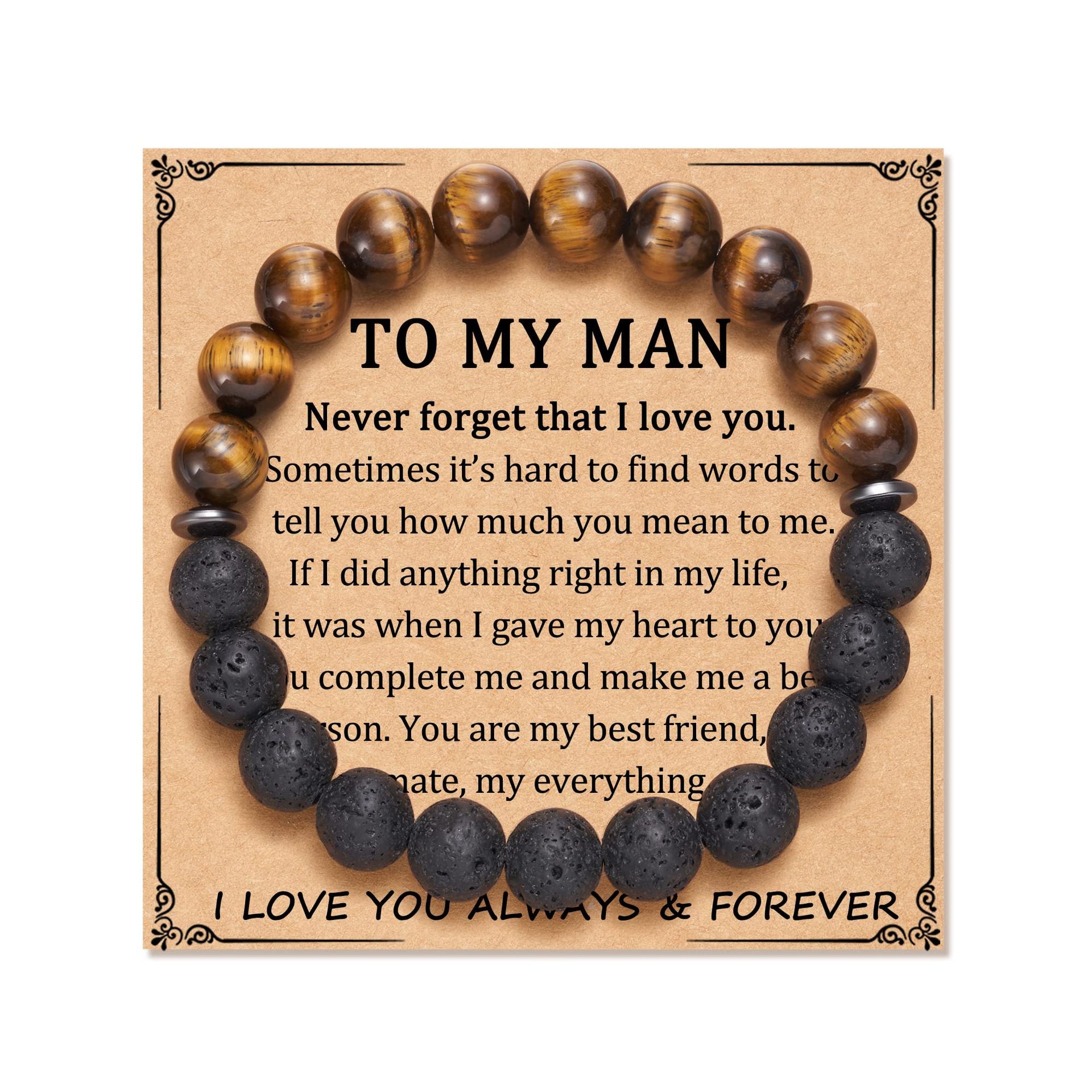 Father Gift Frosted Black Volcanic Rock Adjustable Bracelets