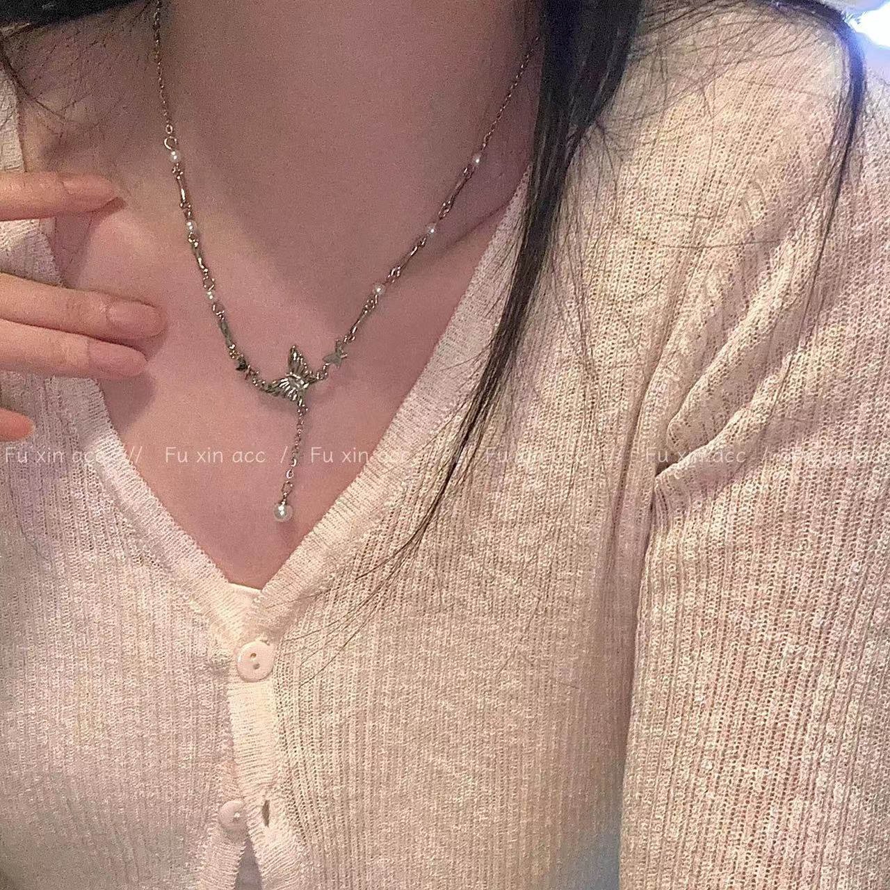 Fu Butterfly Pearl Tassel Light Luxury Necklaces