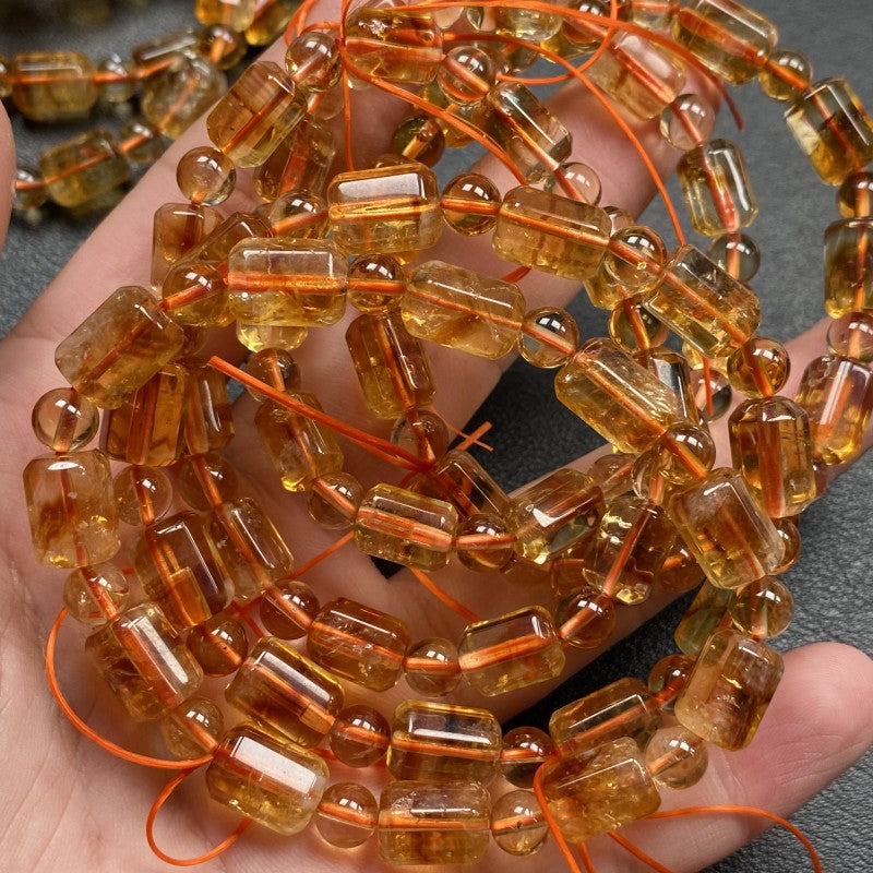 Hexagon Prism Barrel Shaped Bead Pyramid Citrine Ornament Loose Bracelets