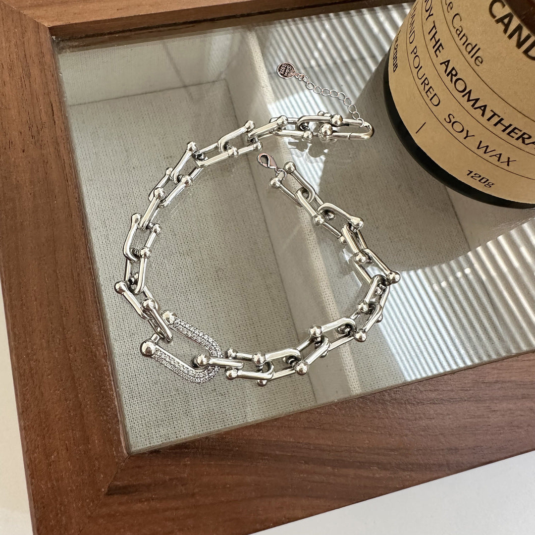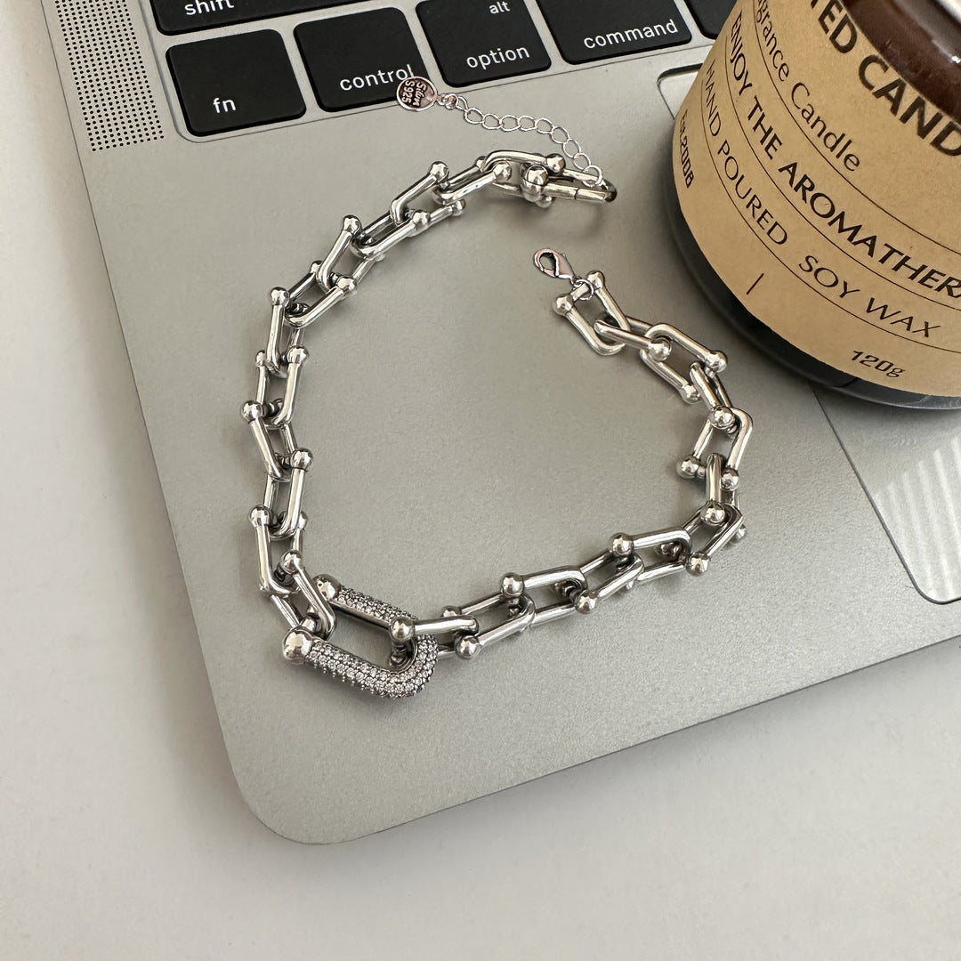 Horseshoe U-shaped Beaded Zircon Stitching Female Personality Bracelets