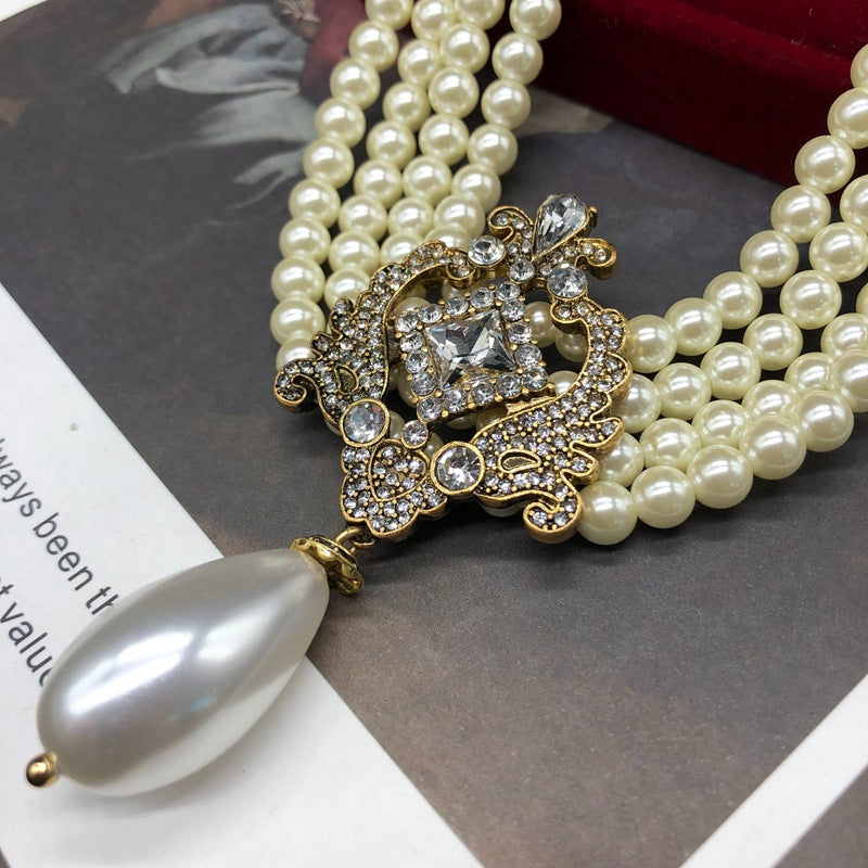 Inlaid Jewel Diamond Water Drop Pendant Necklaces