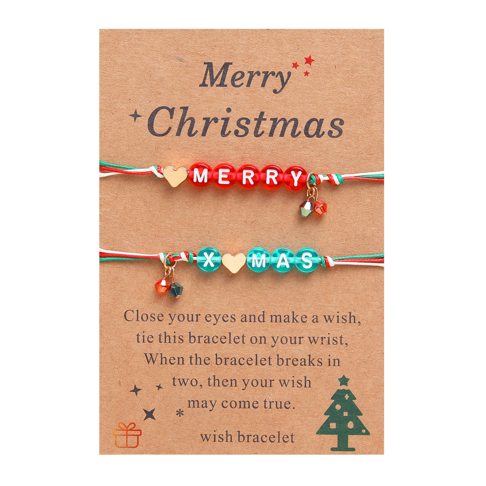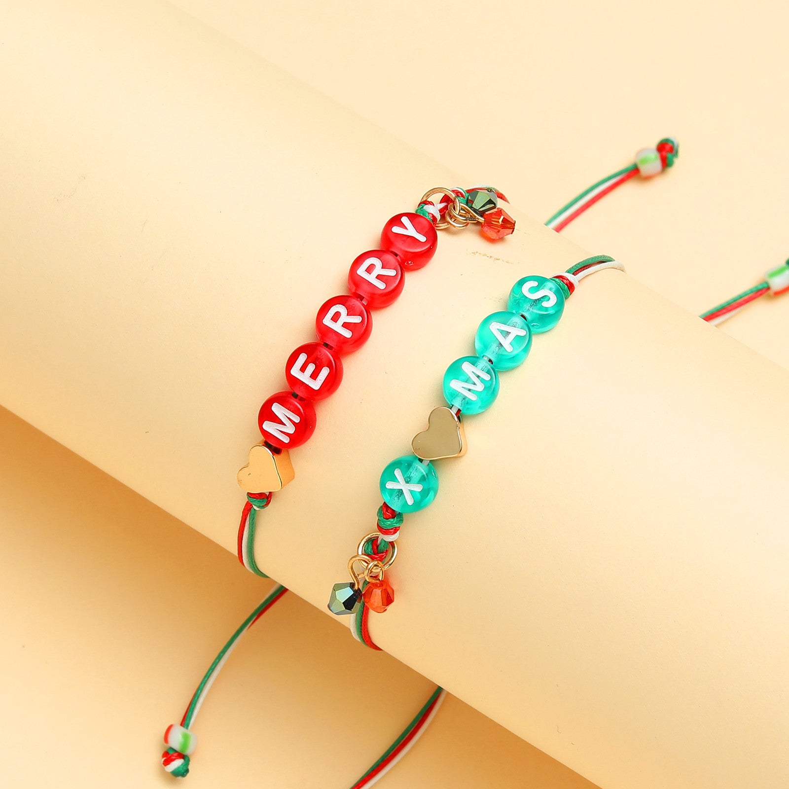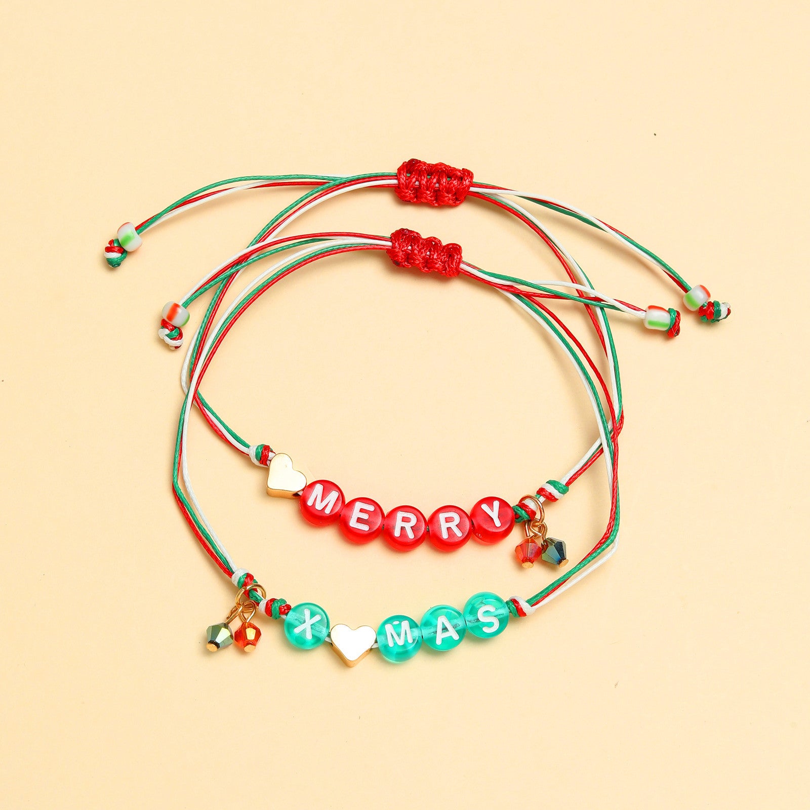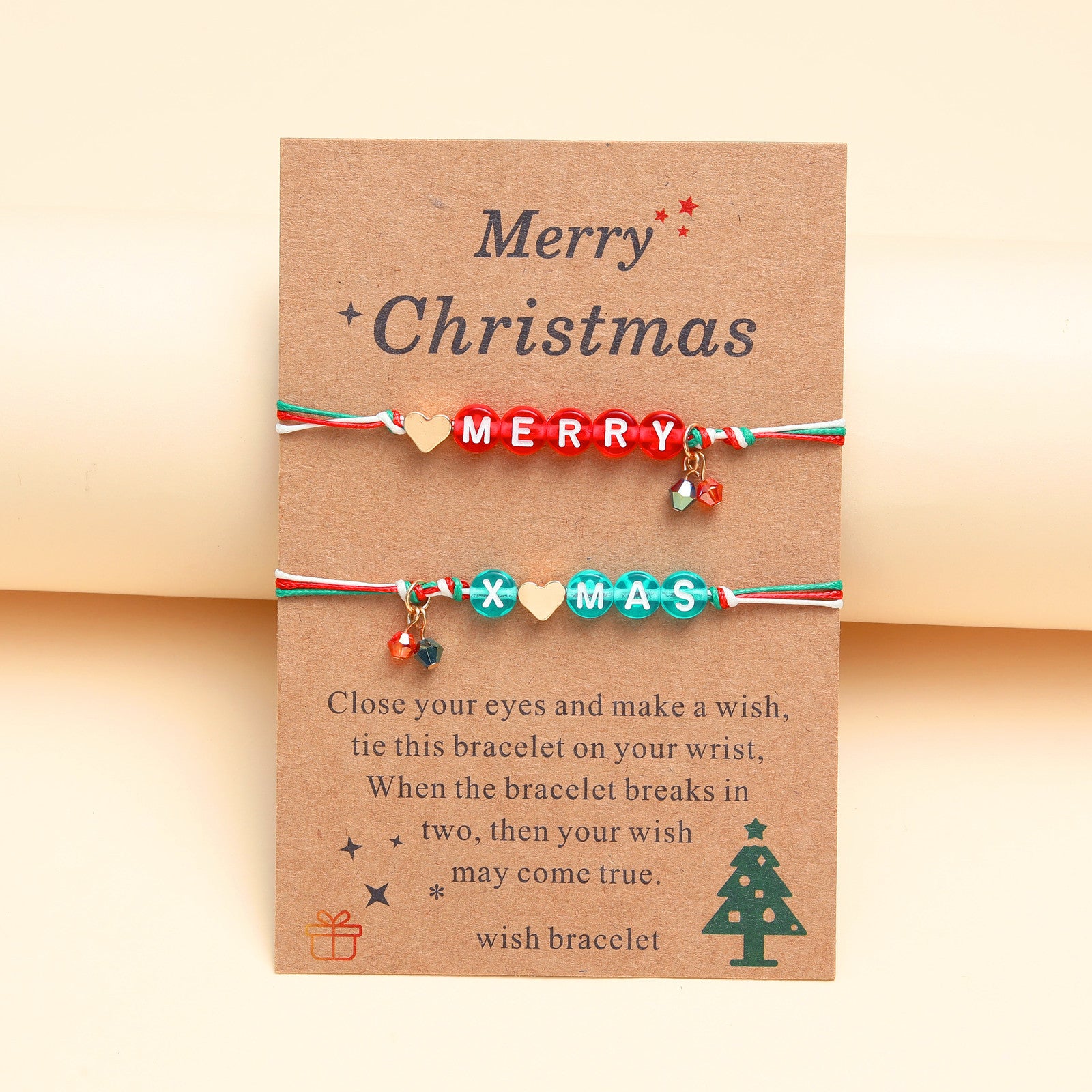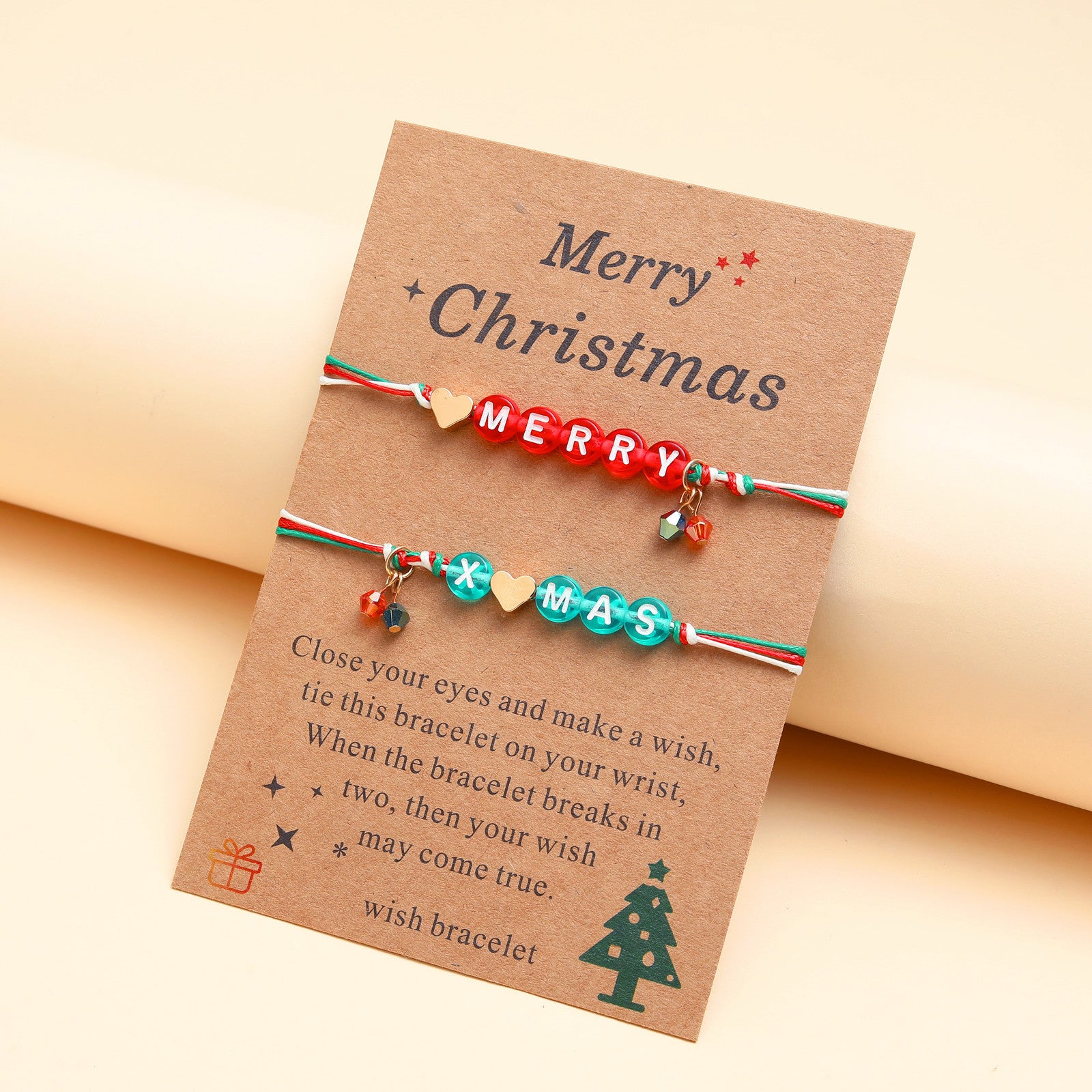 Letter Merry Christmas Glass Pendant Woven Bracelets