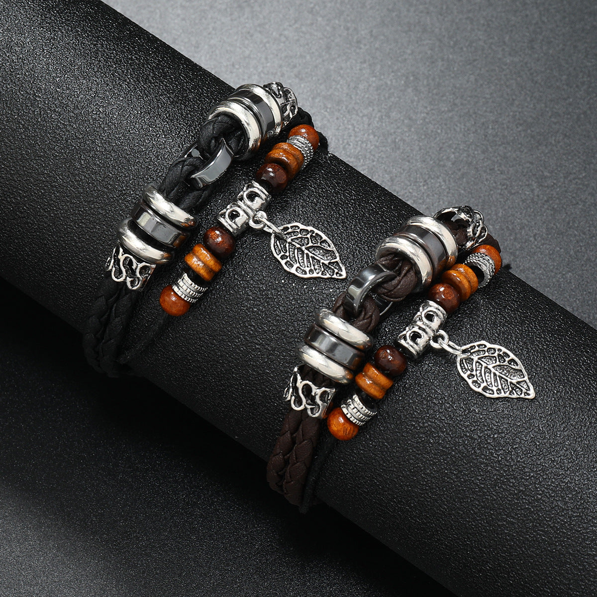 Men's Chic And Unique Beaded Woven Leaf Bracelets