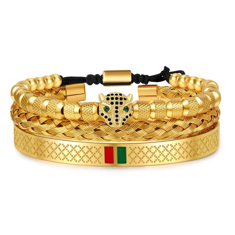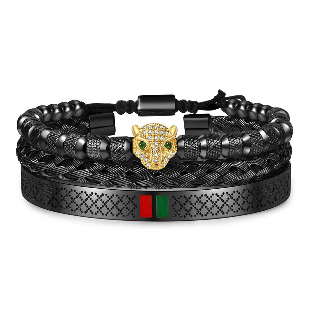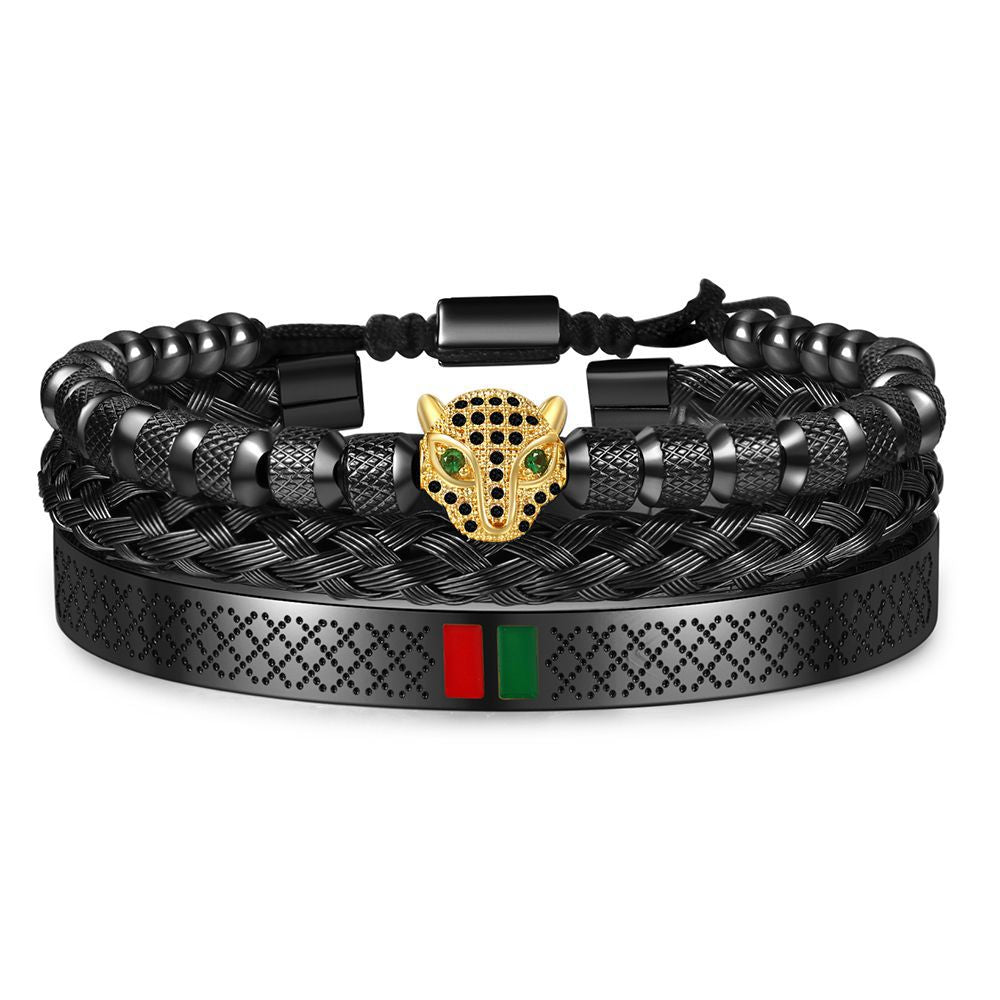 Men's Hop Copper Inlaid Zircon Leopard Head Bracelets