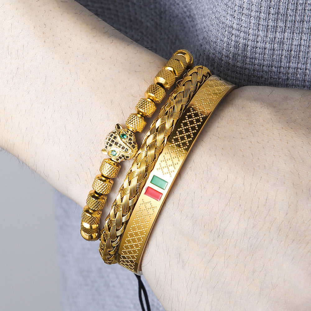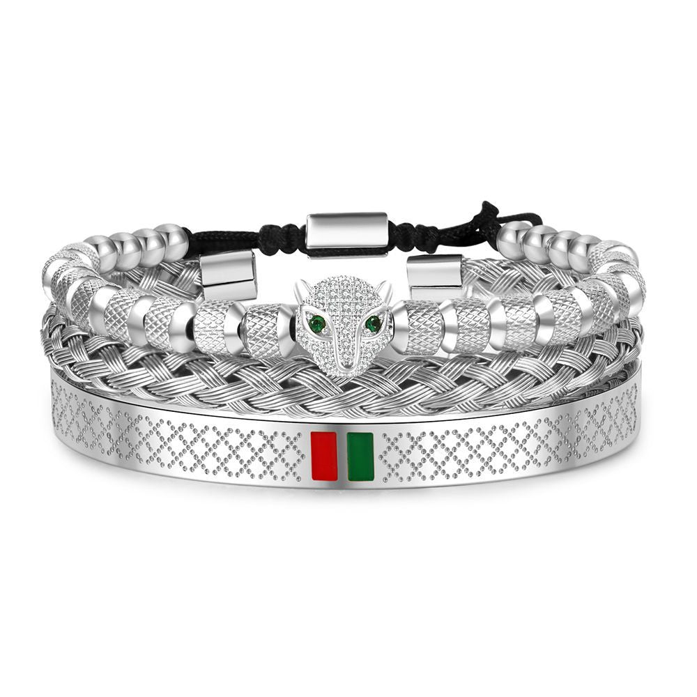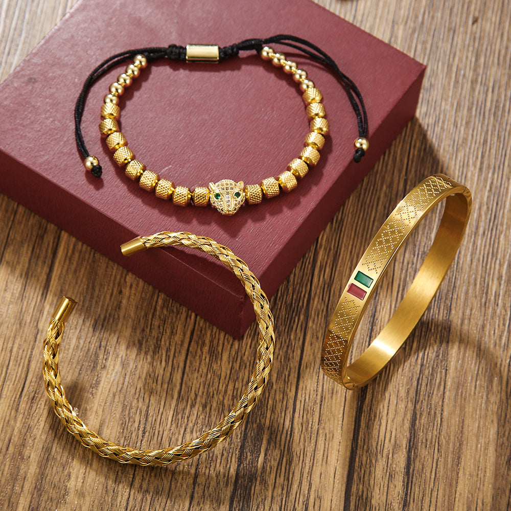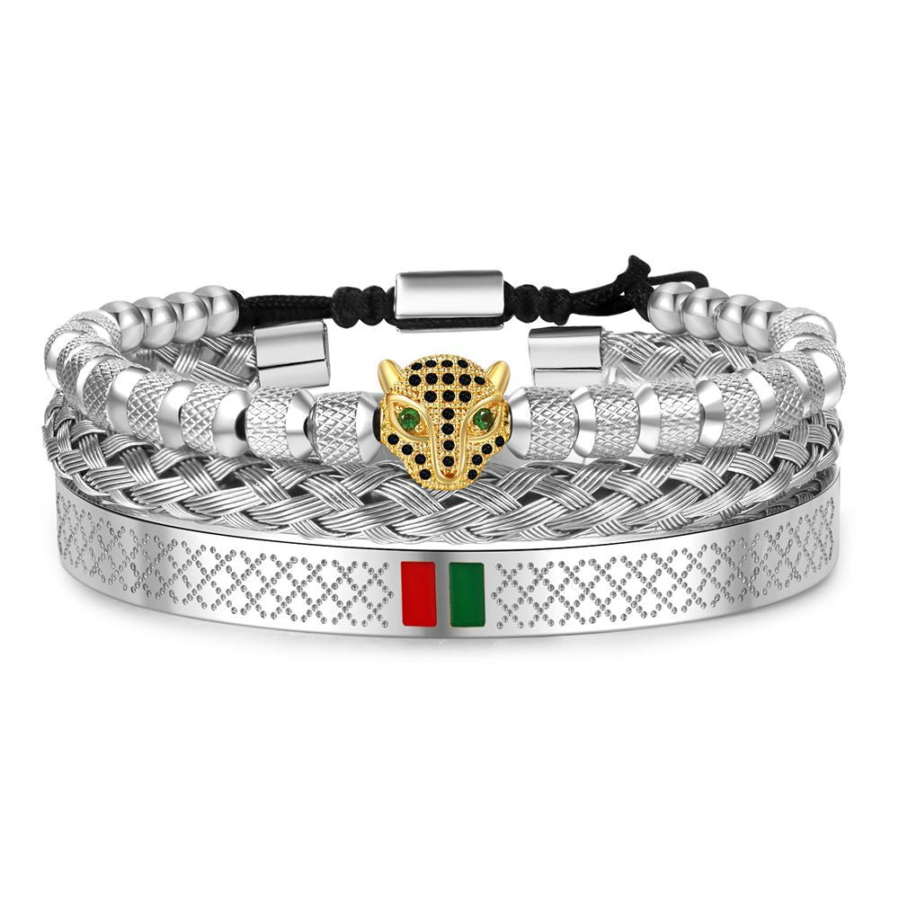 Men's Hop Copper Inlaid Zircon Leopard Head Bracelets