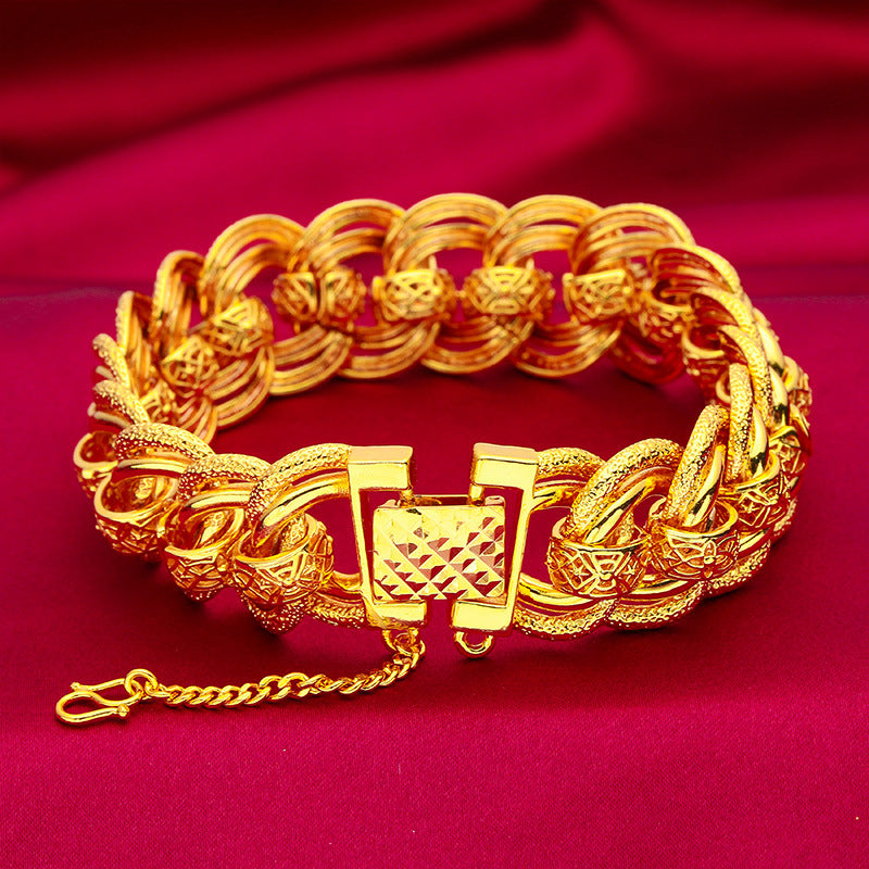 Men's Placer Gold Watch Chain Wide Brim Bracelets
