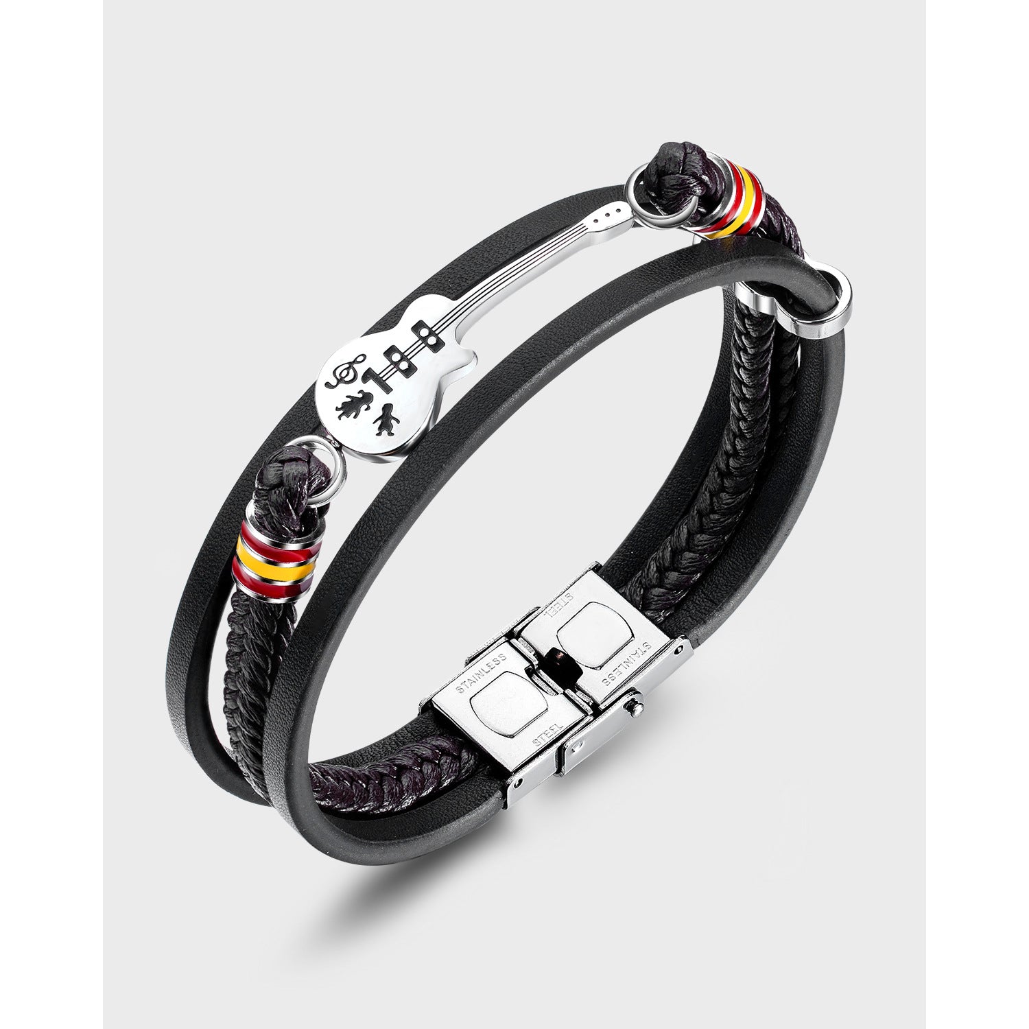 Men's Trendy Fashion Hip Hop Mini Guitar Leather Cord Jewelry Bracelets