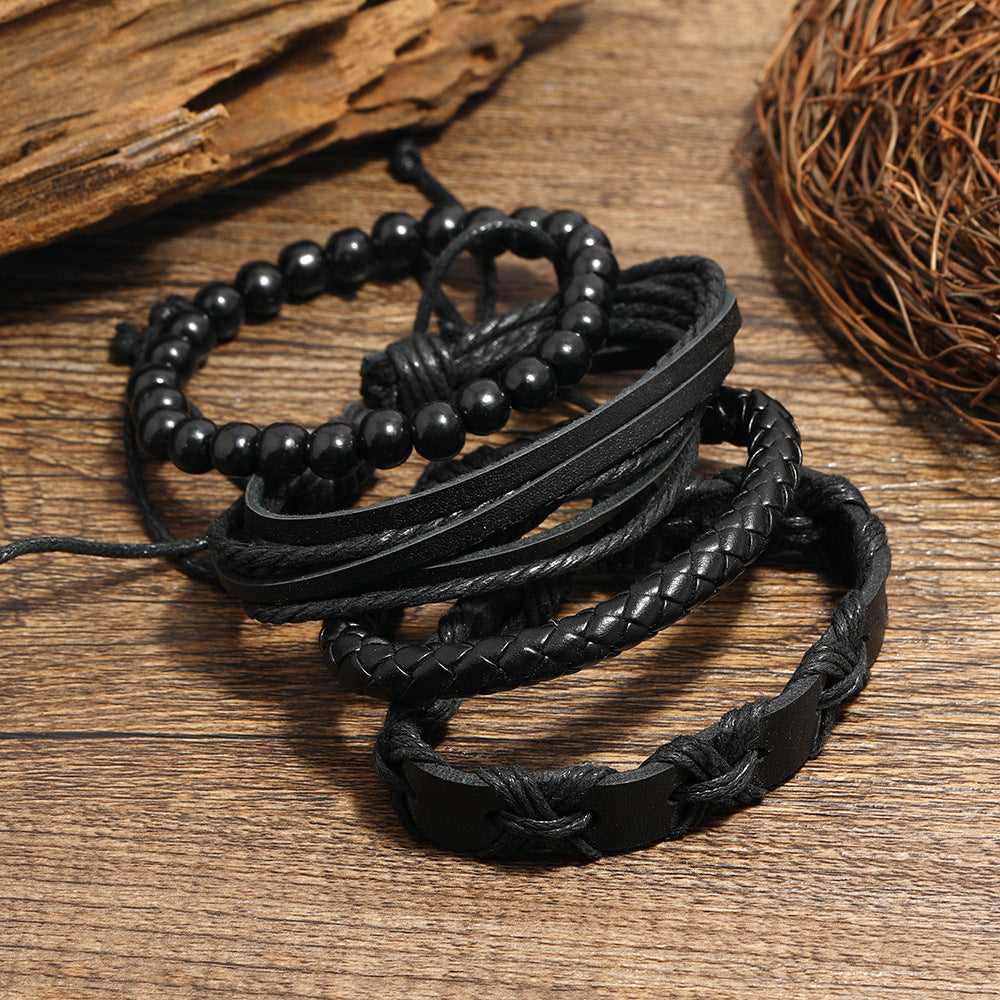 Men's Vintage Weave Personalized Leather Suit Combination Bracelets