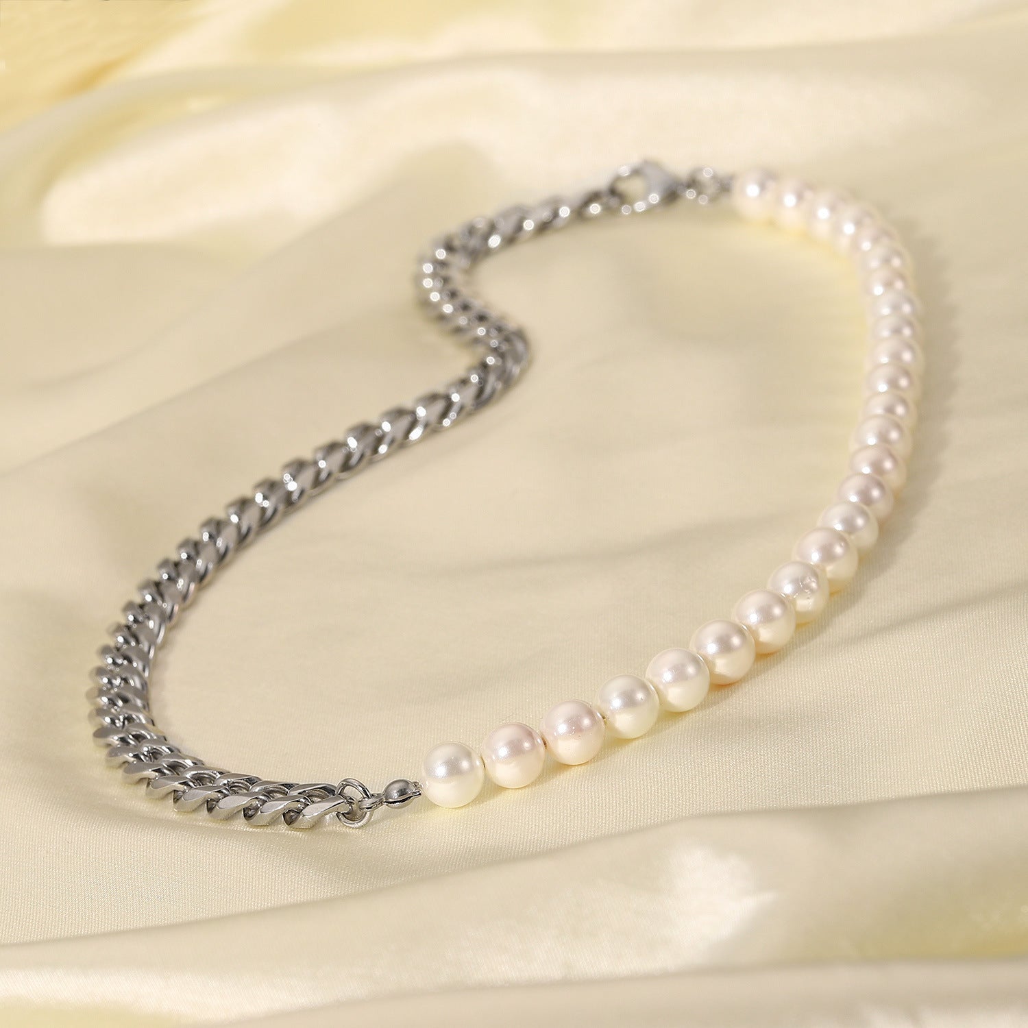 Men's Wide Inch Long Bright Bead Stitching Necklaces