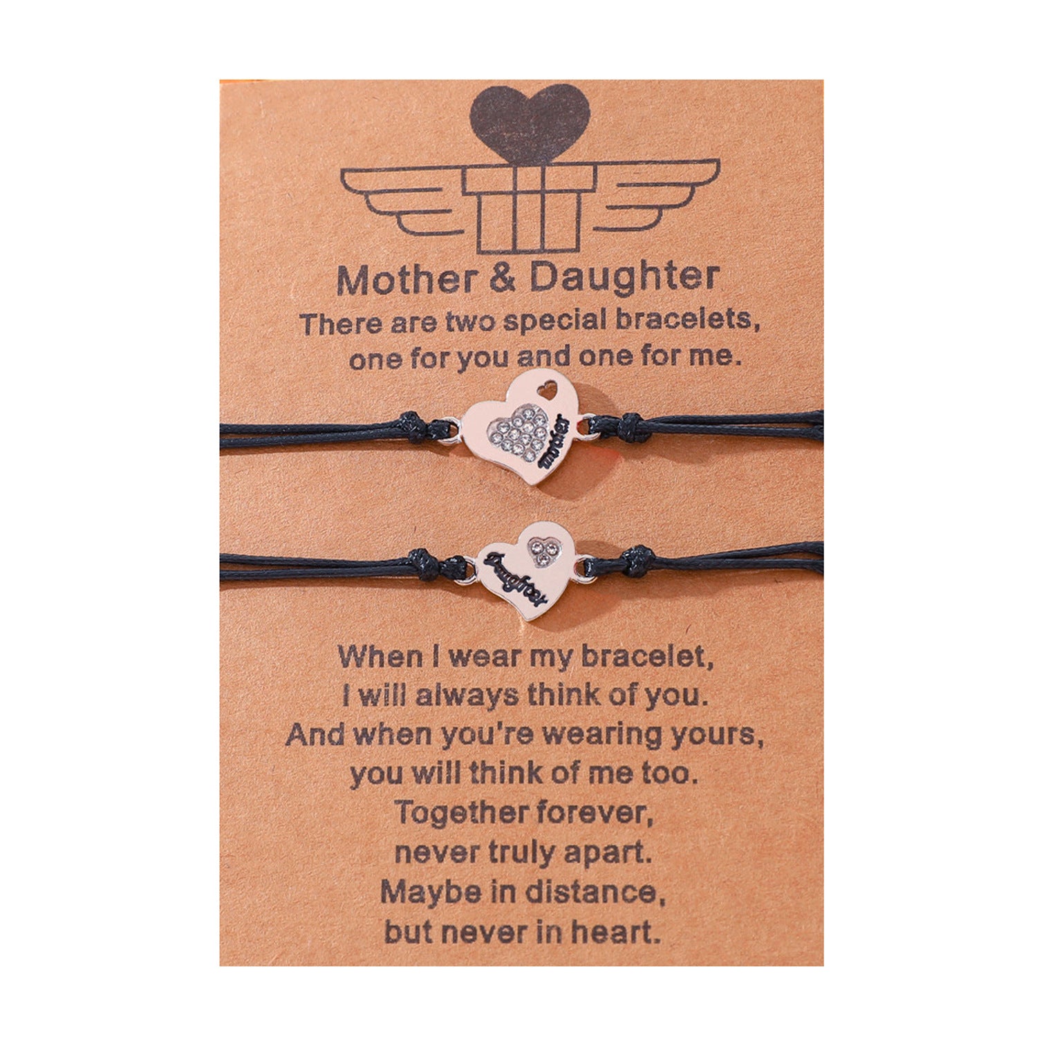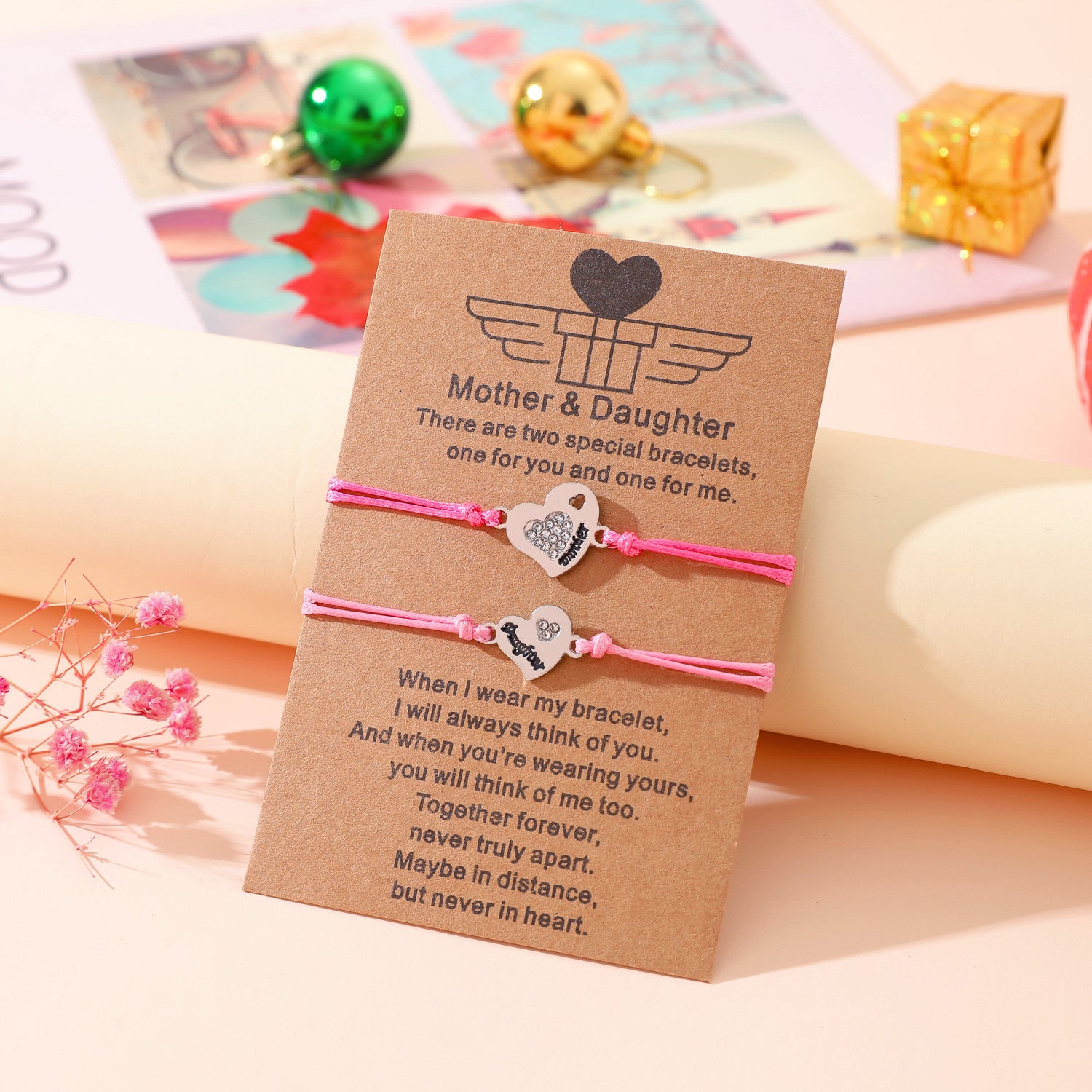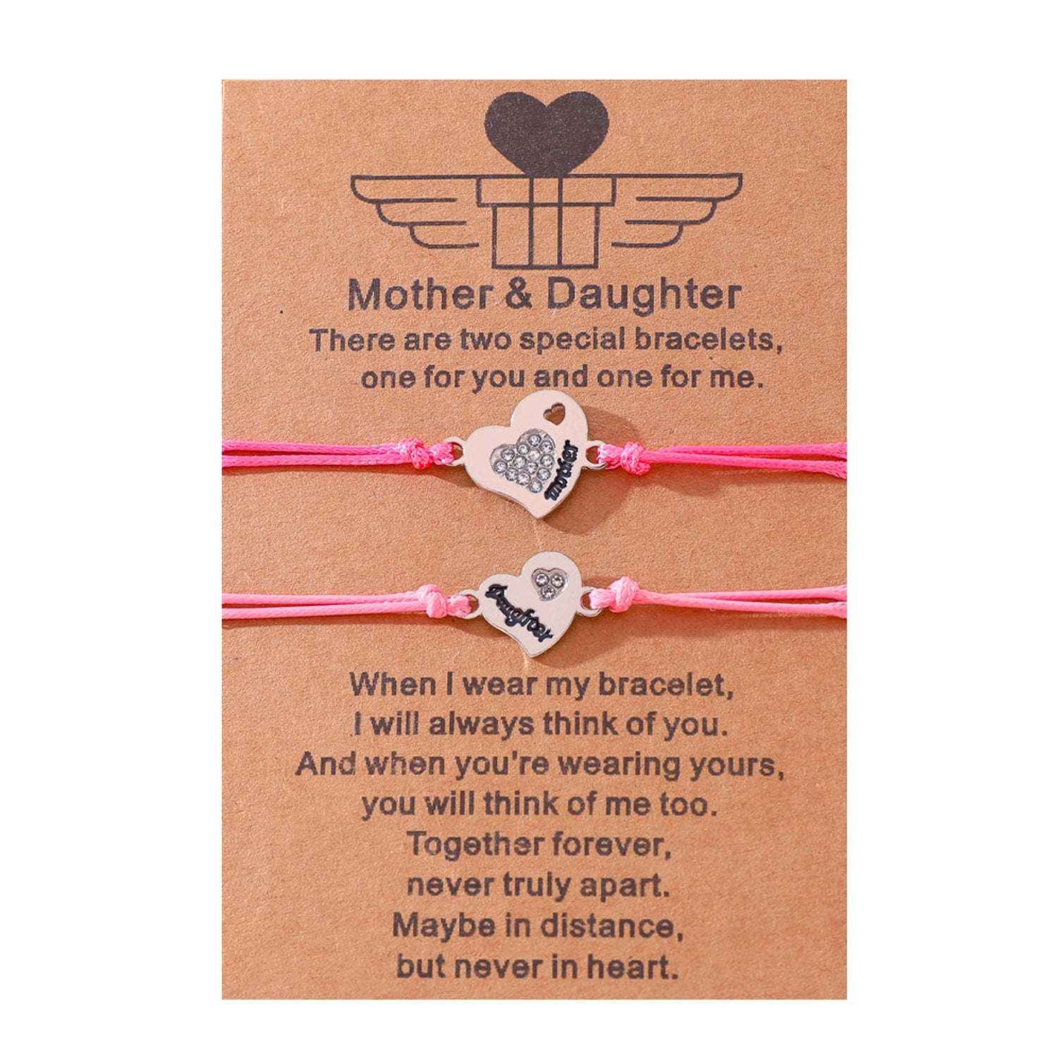 Metal Diamond Heart-shaped Mother And Daughter Lettering Bracelets