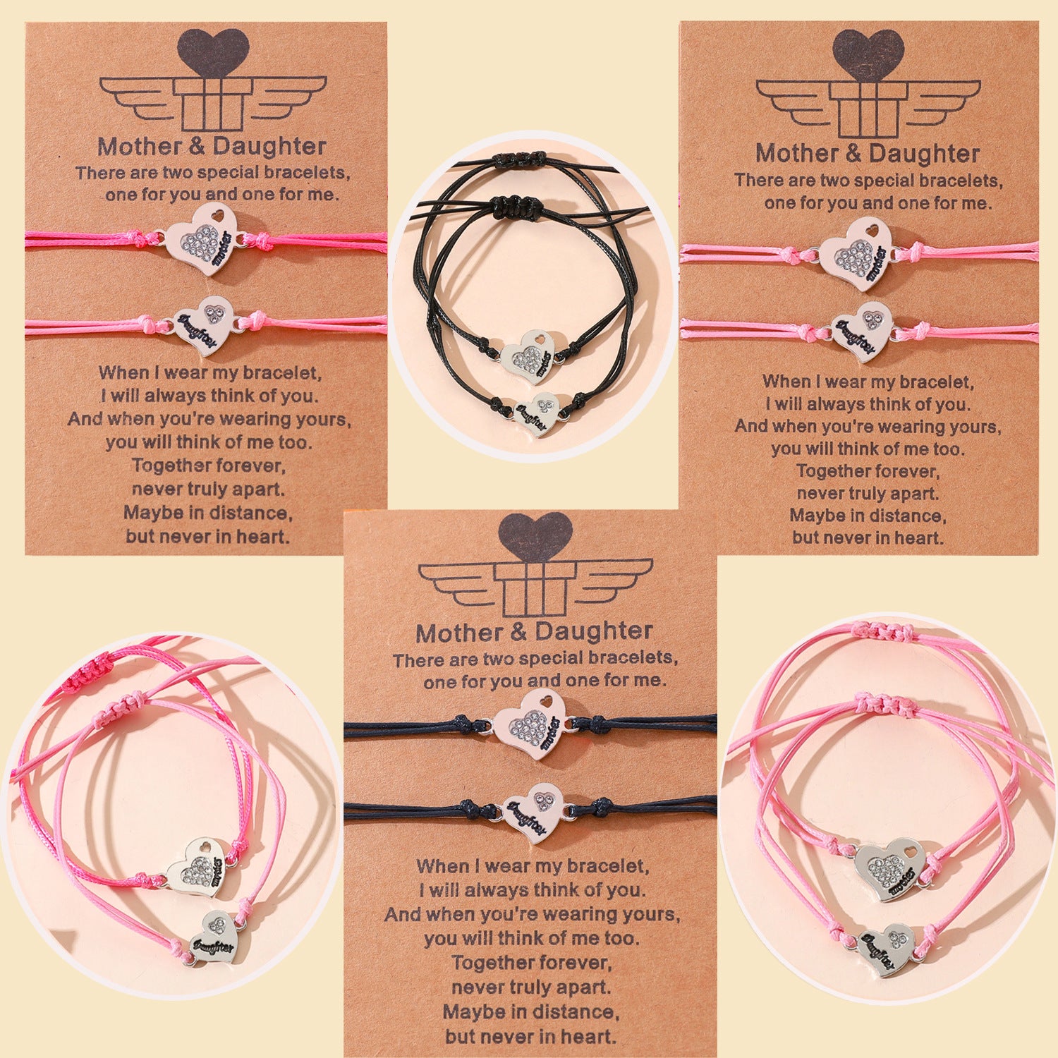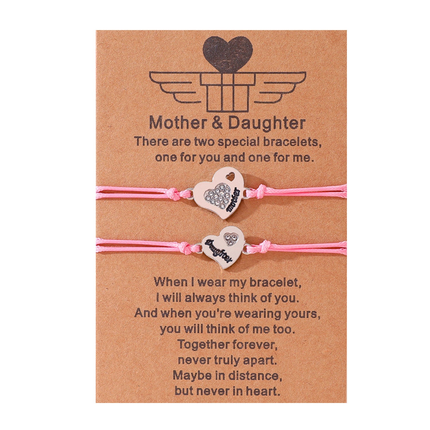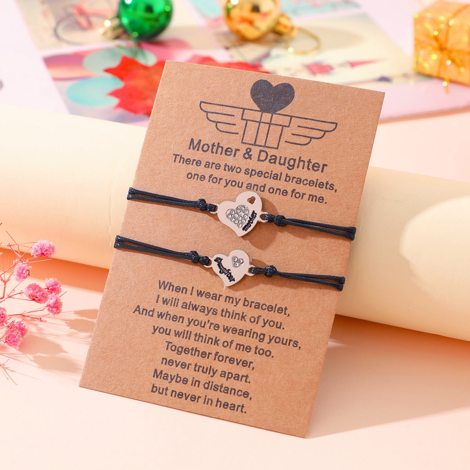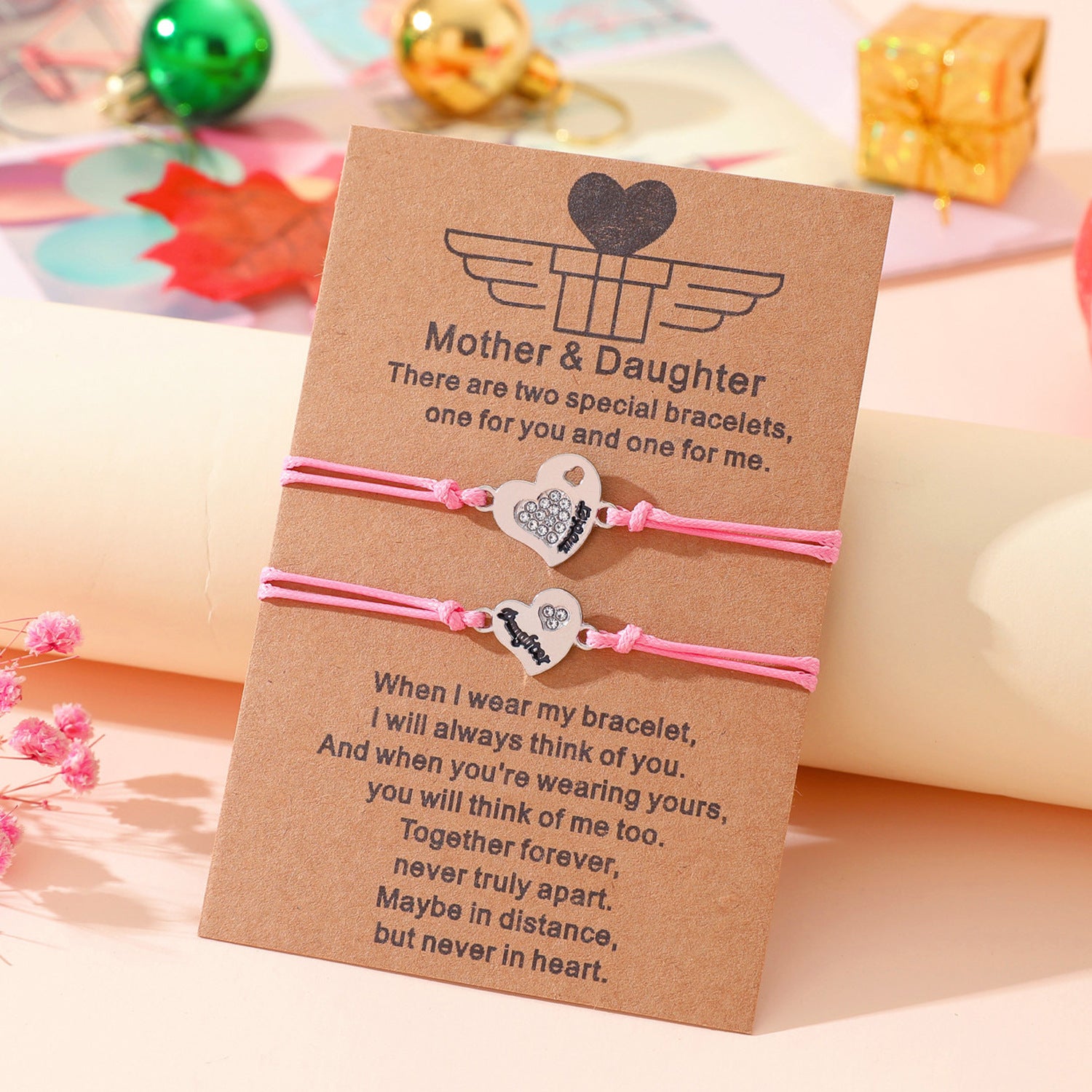 Metal Diamond Heart-shaped Mother And Daughter Lettering Bracelets