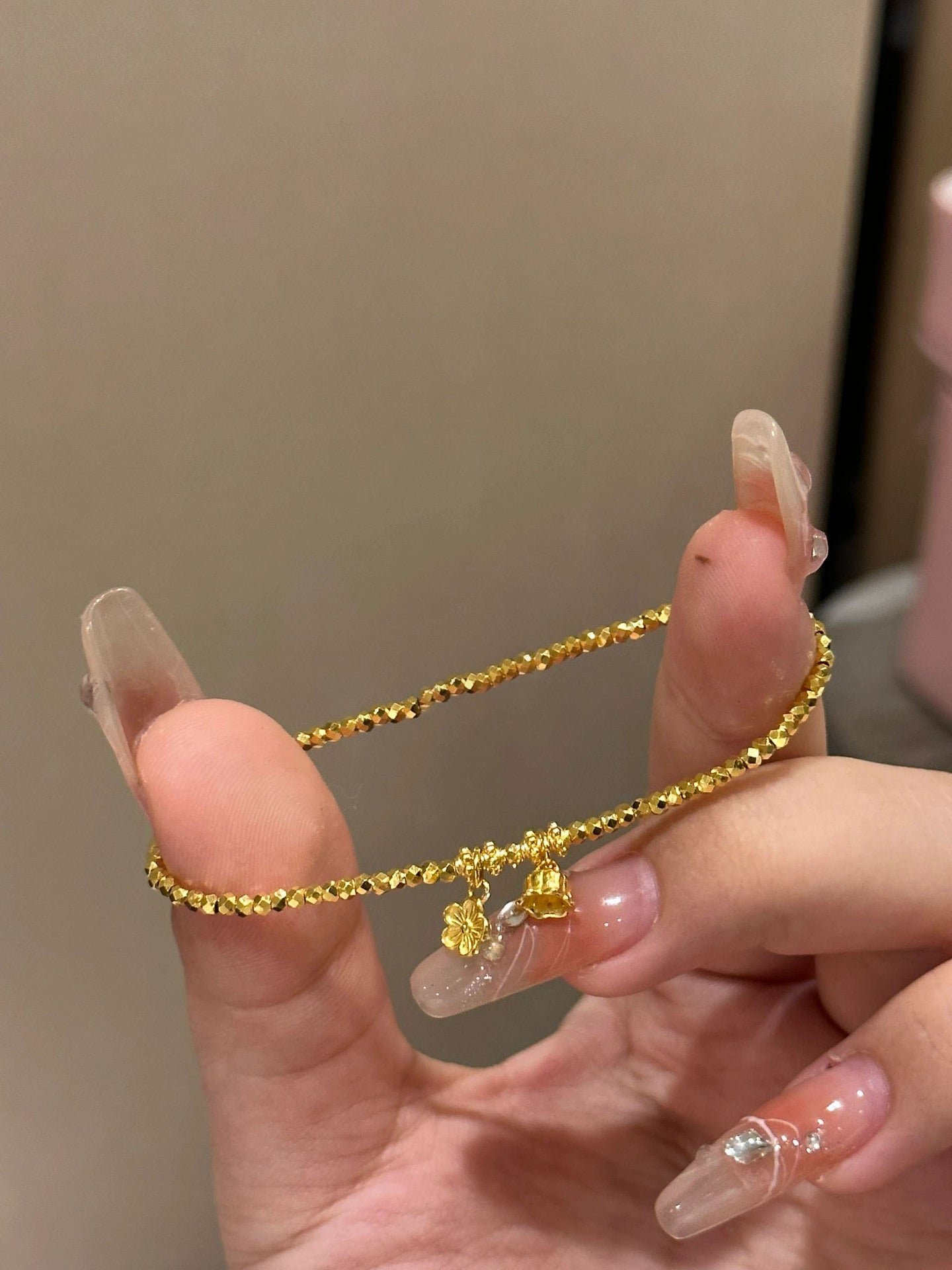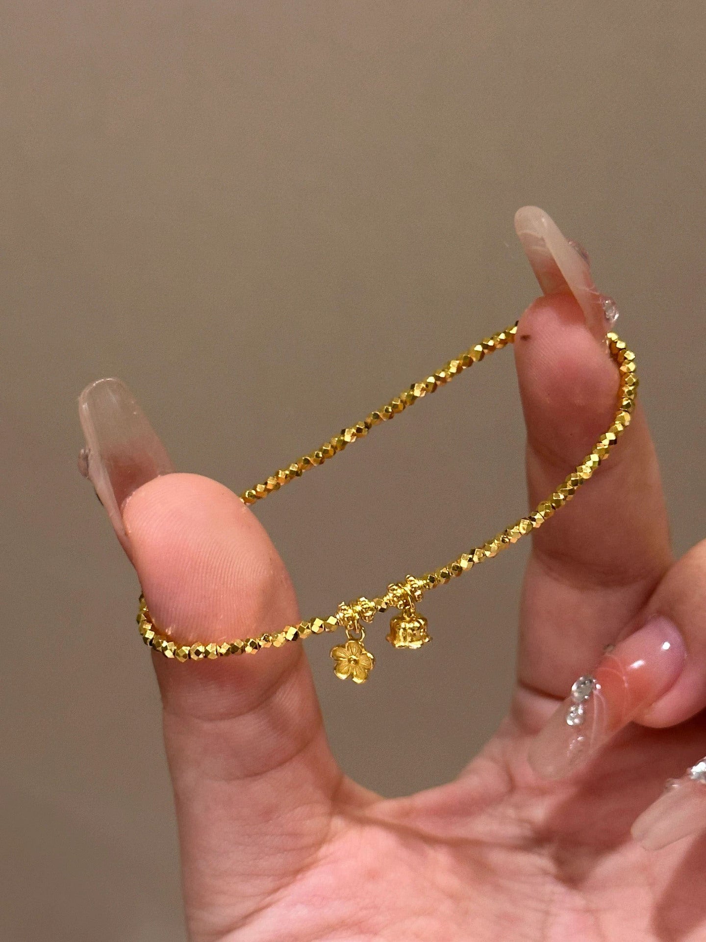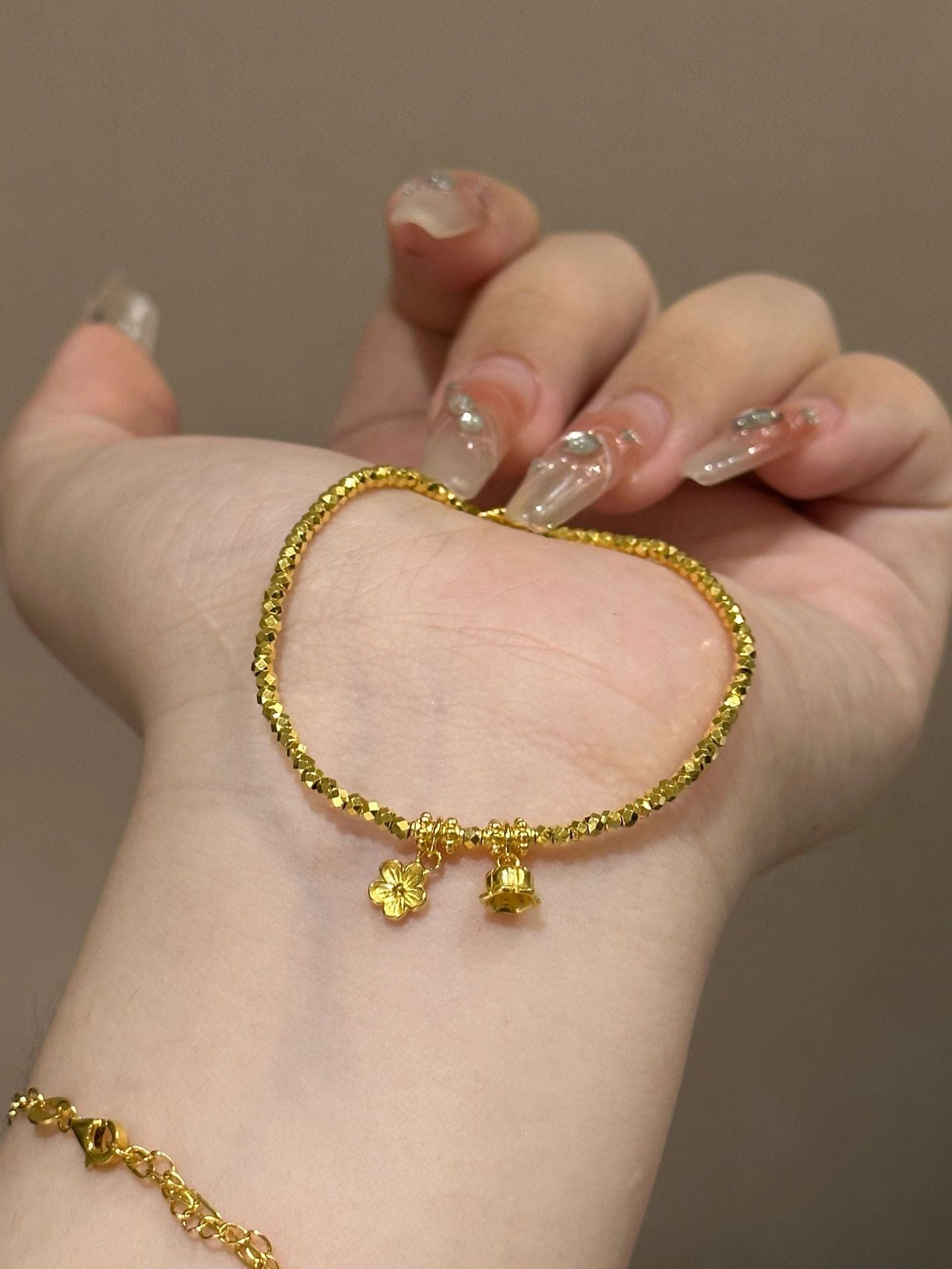 Personalized Broken Gold Flower Round Beads Disco Elastic String Bracelets