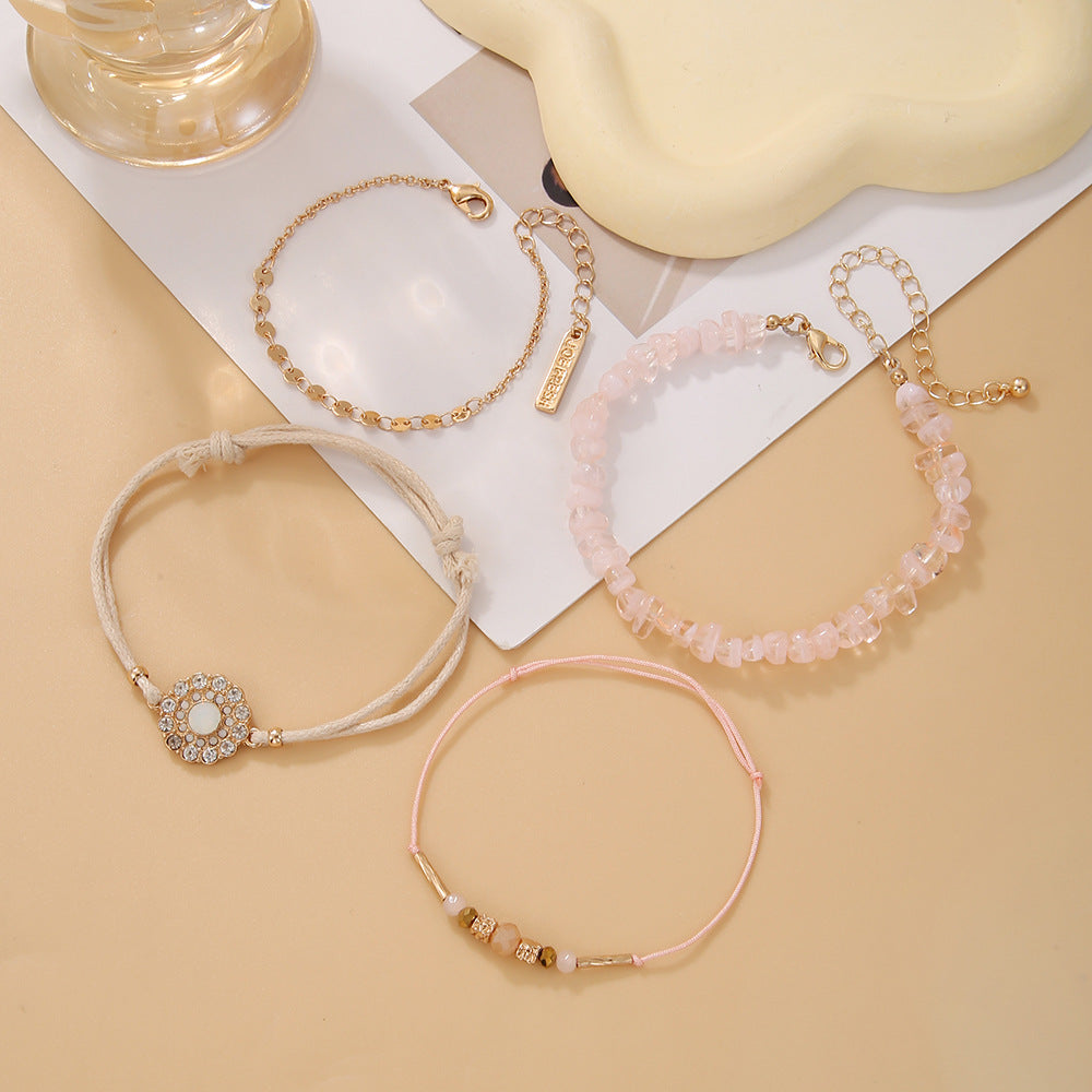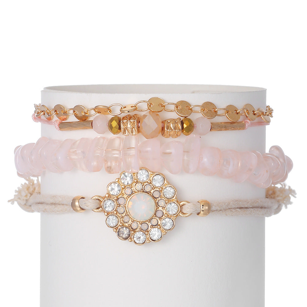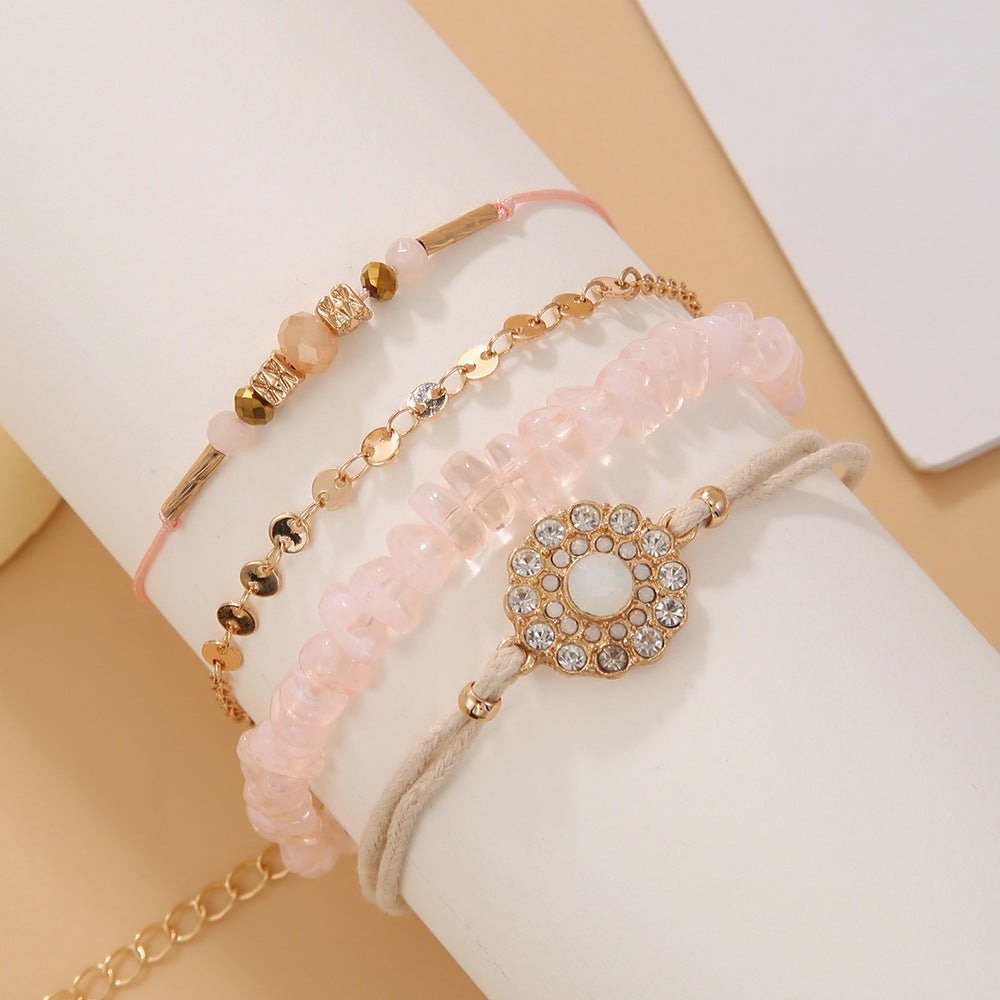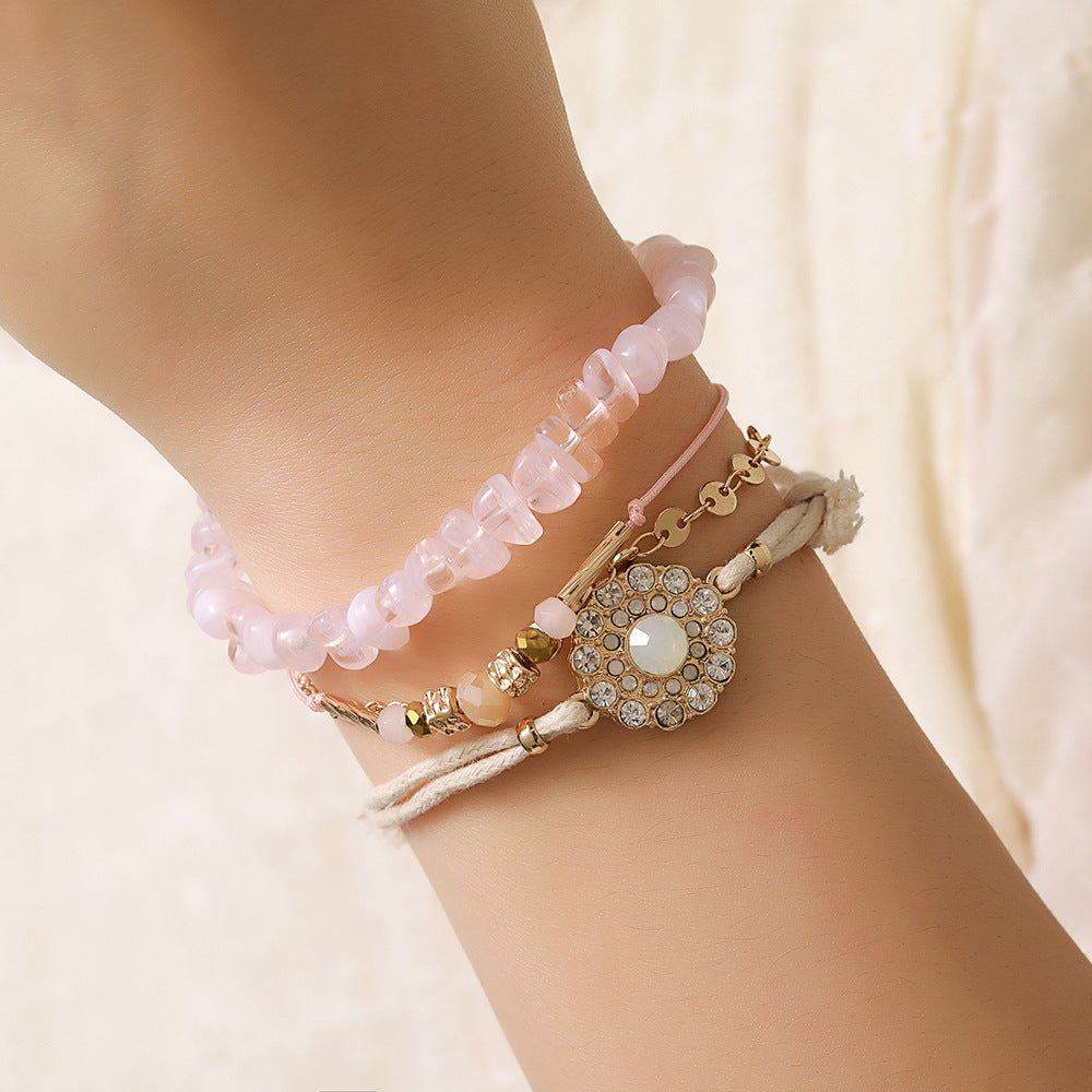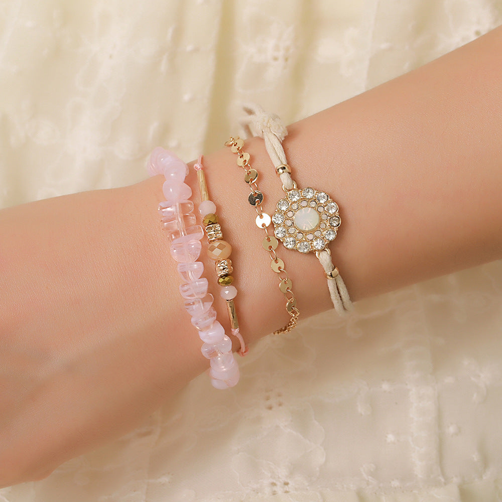 Vintage Suit Fashion Diamond Flower Pink Bracelets