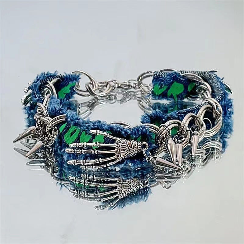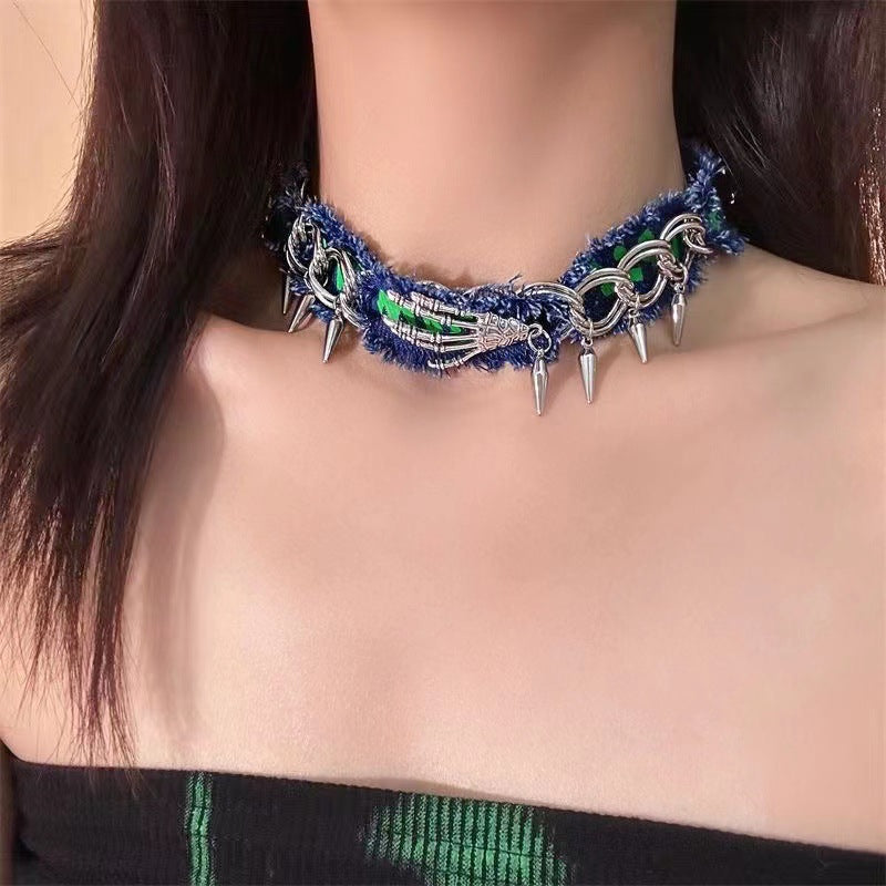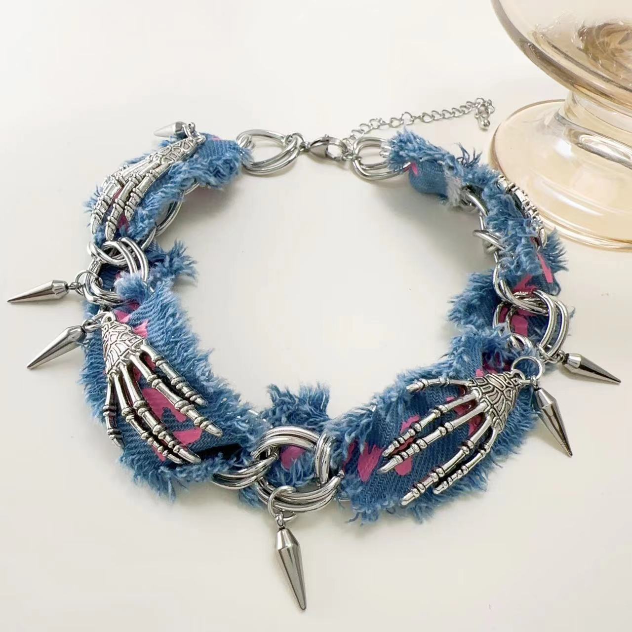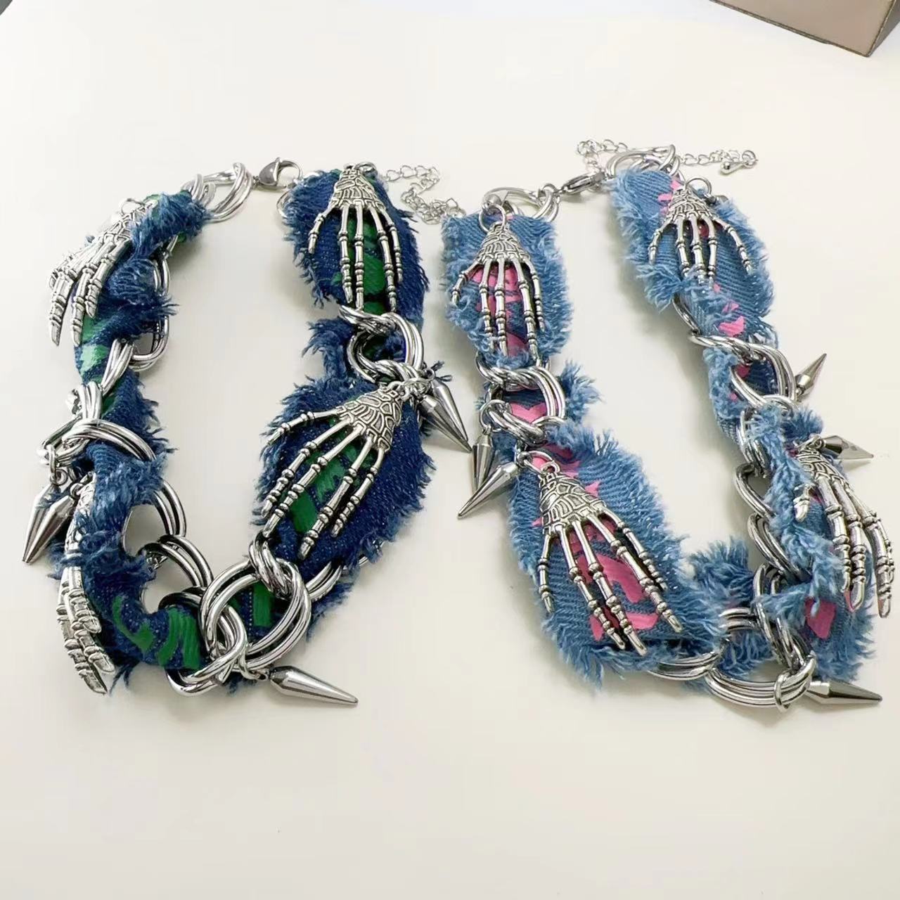 Women's Blue Ghost Claw Chain Distressed Titanium Steel Necklaces