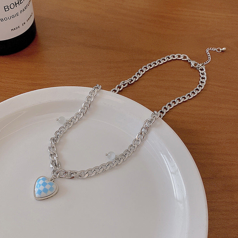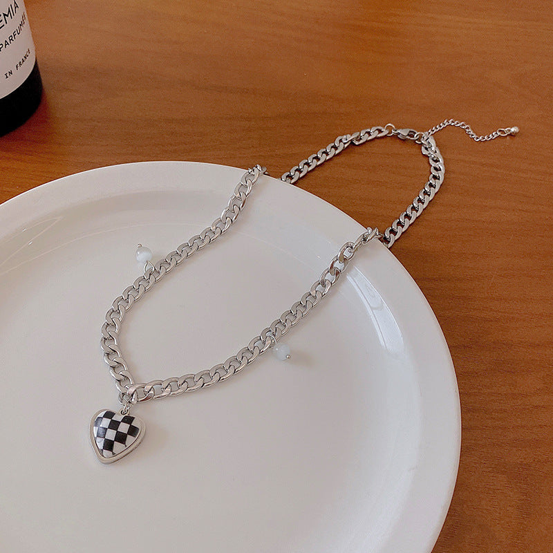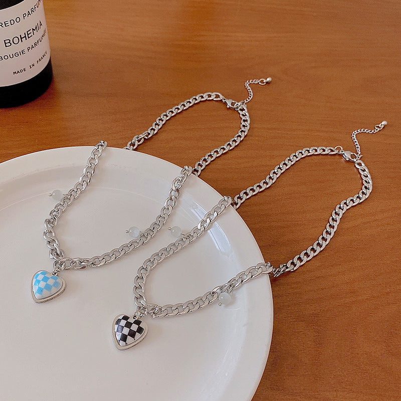 Women's Chessboard Plaid Love High Sense Pullover Necklaces