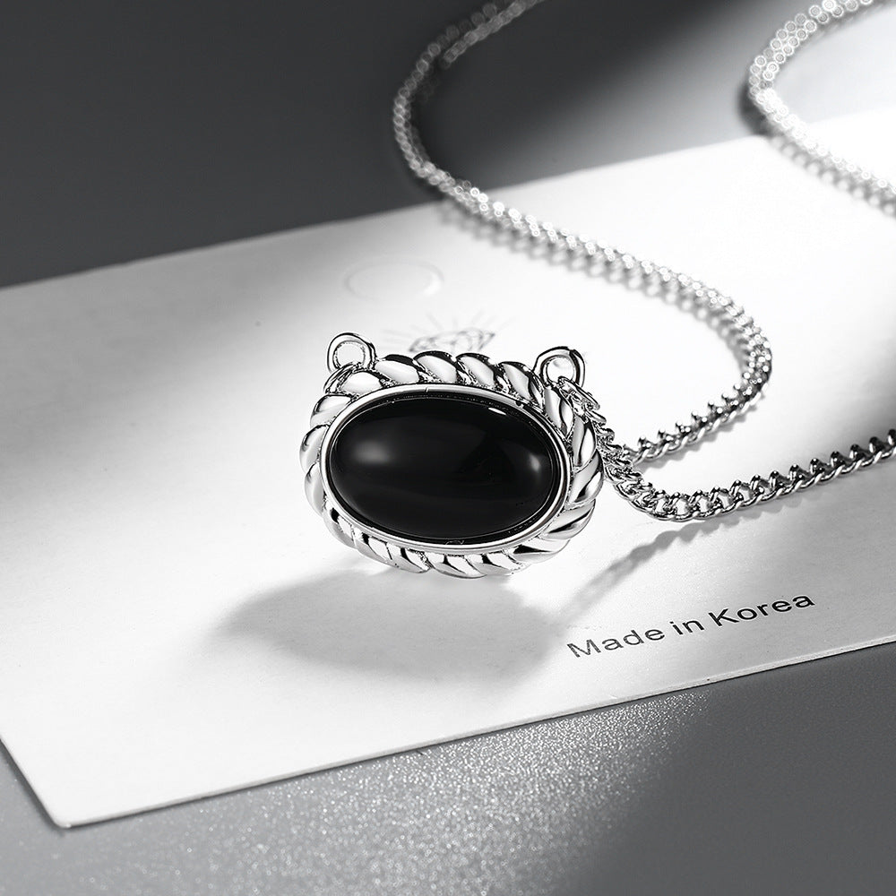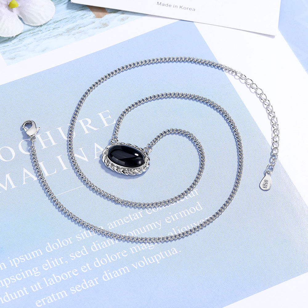 Women's French Style Vintage Thread Edge Twist Inlaid Natural Black Necklaces