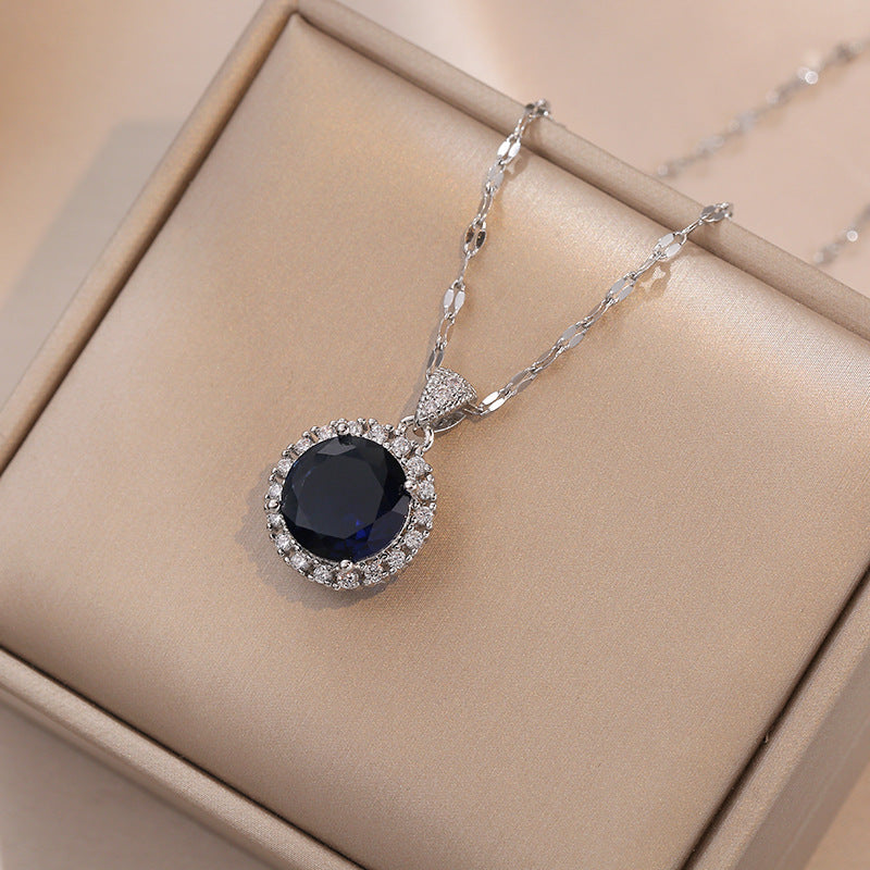 Women's Luxury Gold Full Diamond Sapphire Minority Necklaces