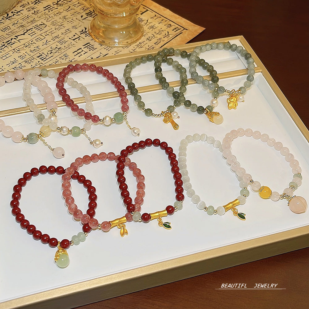 Women's Luxury Minority High Graceful Strawberry Quartz Bracelets
