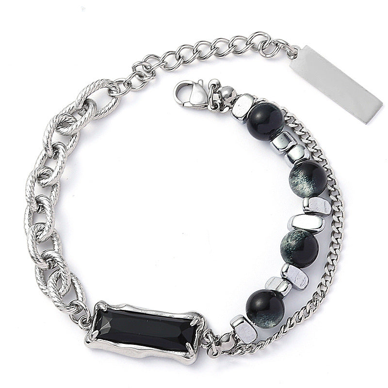 Women's & Men's & Design Opal Stitching Titanium Steel Bracelets