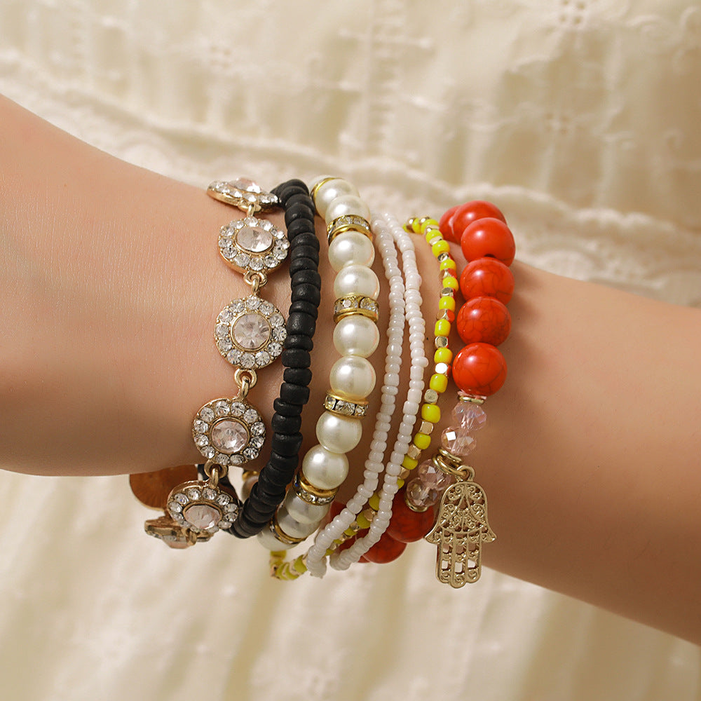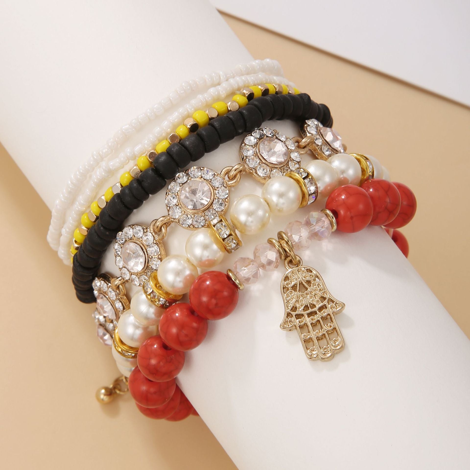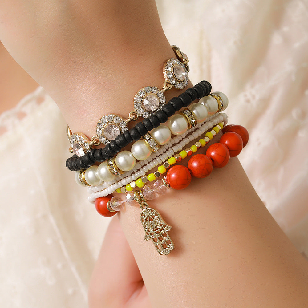 Women's Palm Diamond Beaded Wooden Bead Bohemian Bracelets