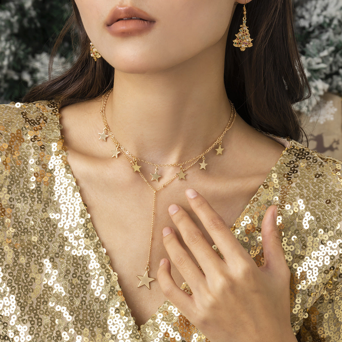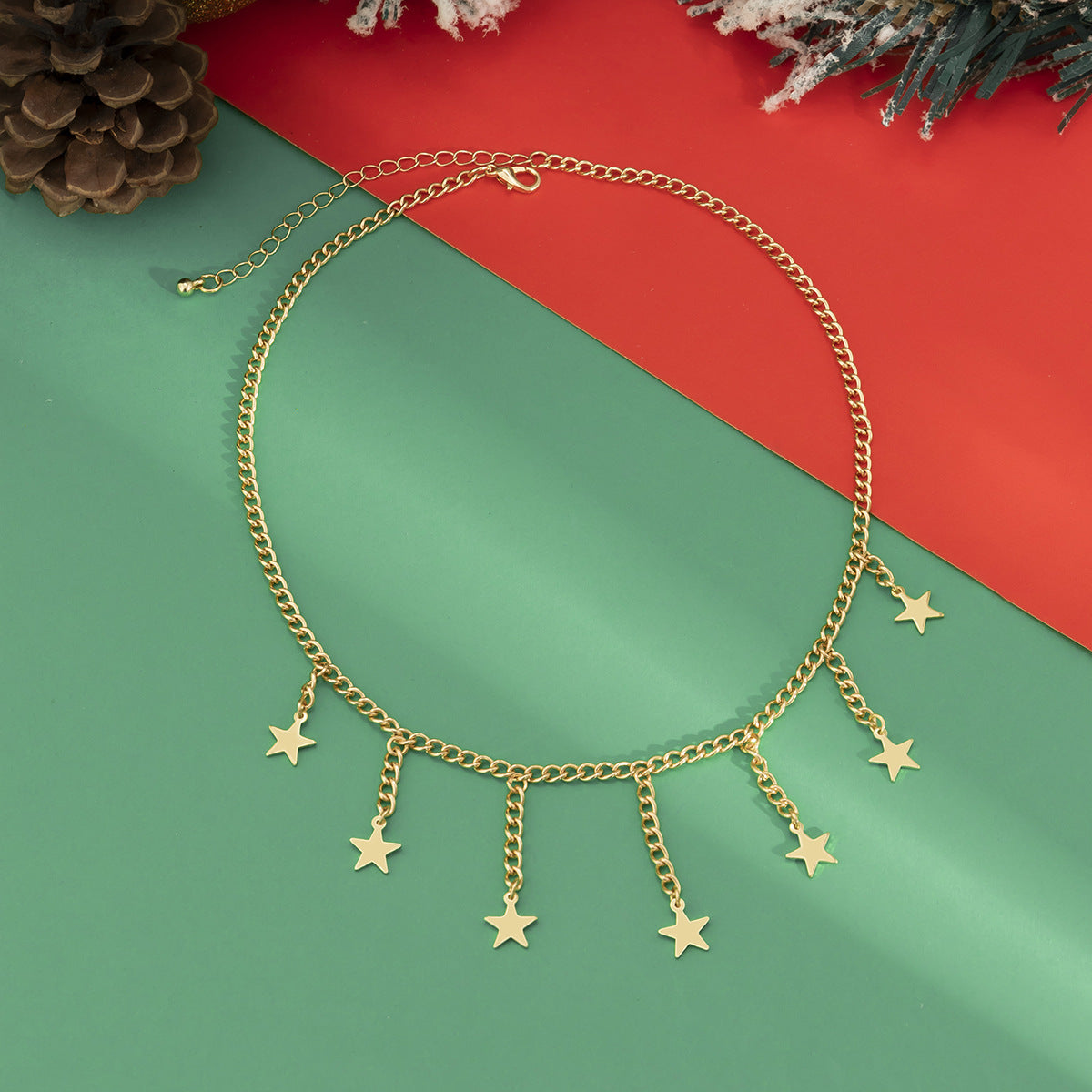 Women's Simple Long Metal Sweater Chain Christmas Necklaces