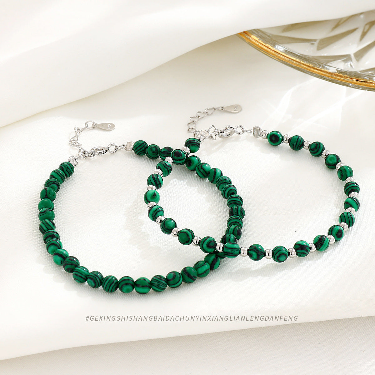 Color: Malachite Sliver Beads Bracelet, Malachite Bracelet