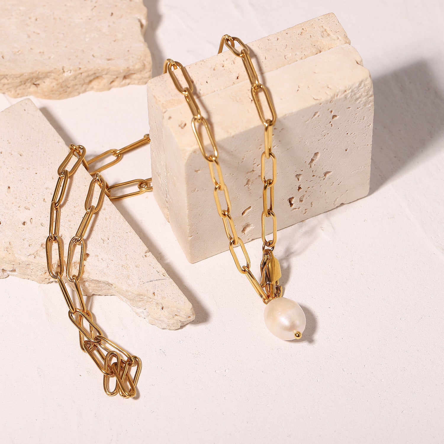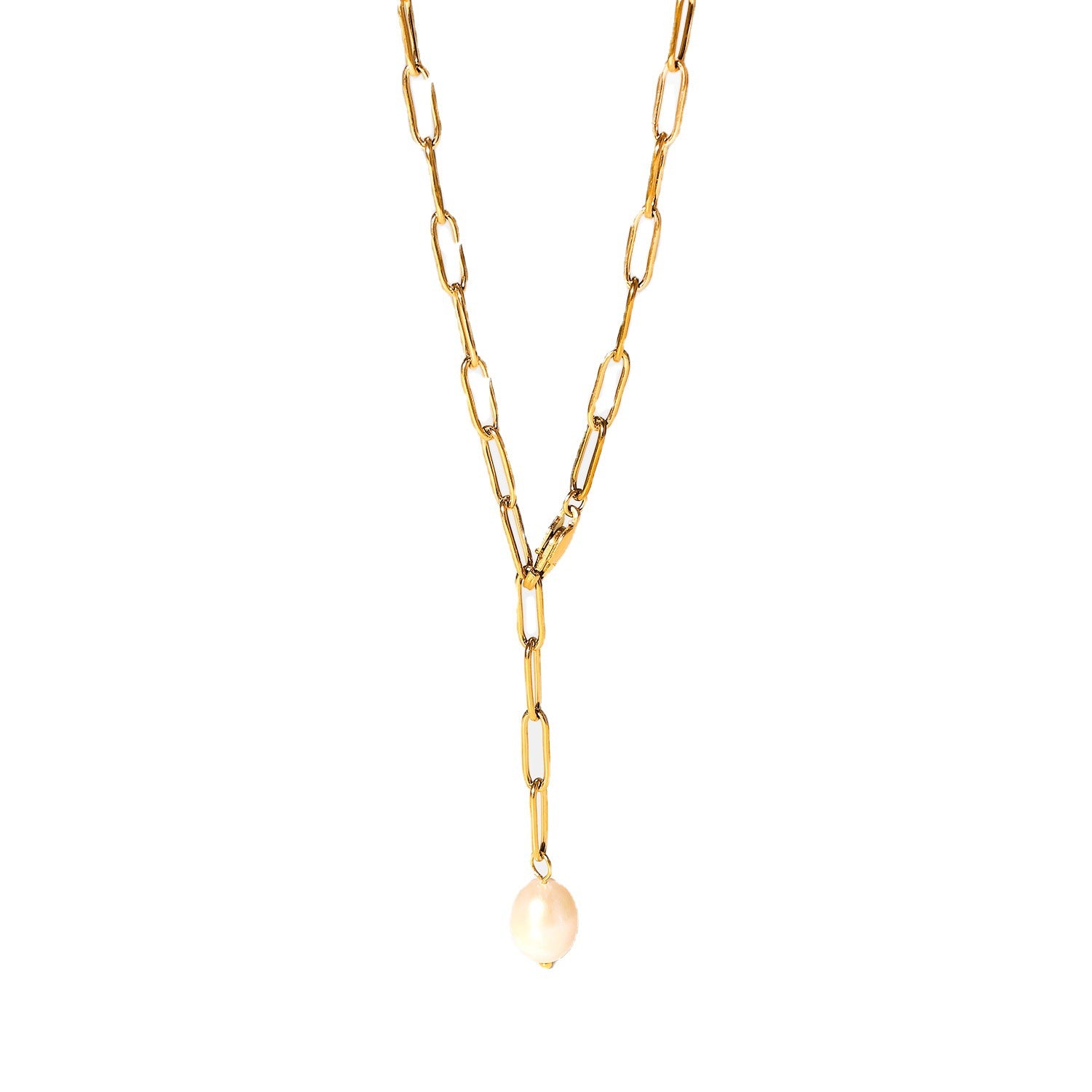 Women's Stainless Steel Clip Chain Pearl Y-shaped Necklaces