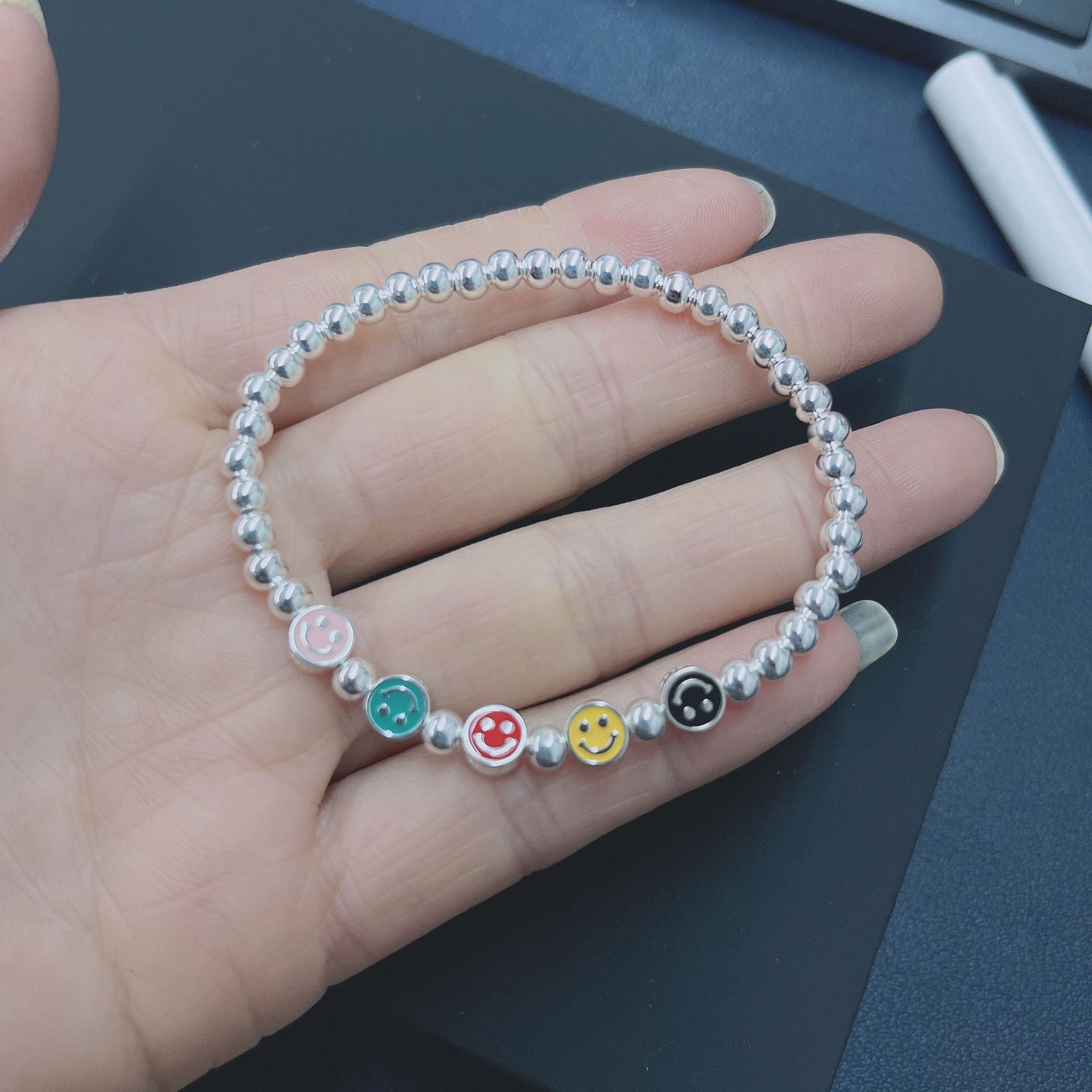 Women's Sterling Sier Colorful Oil Smiley Handmade Necklaces