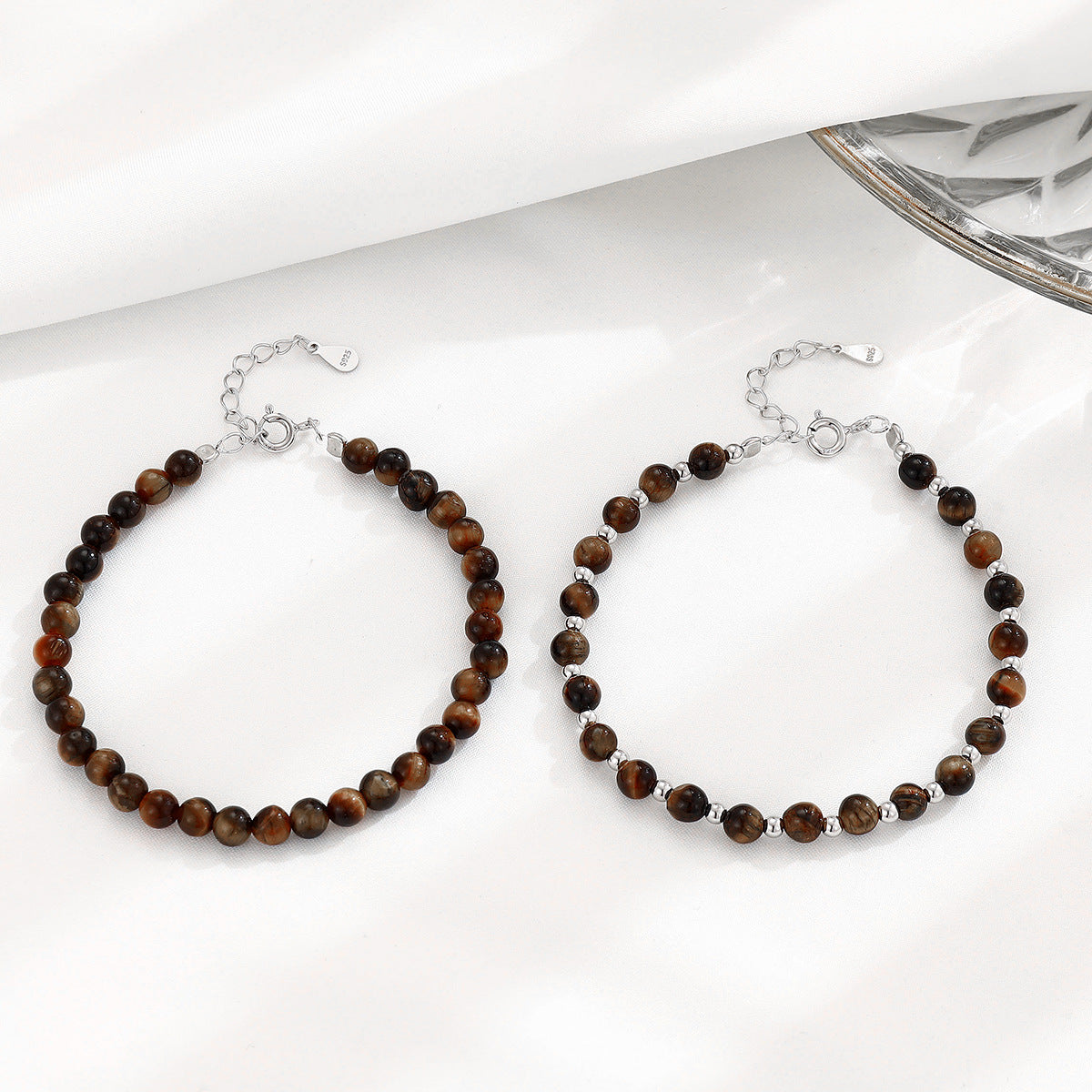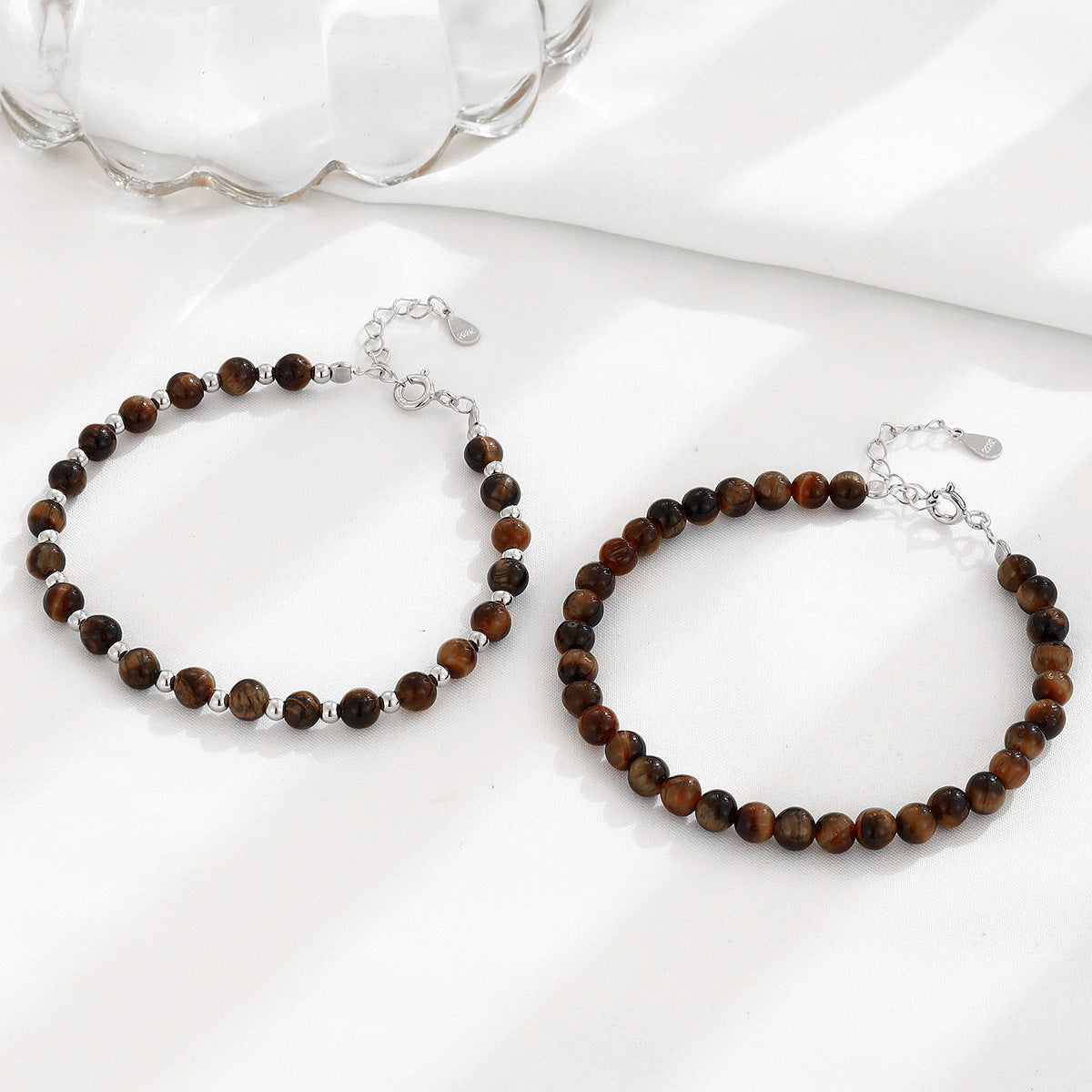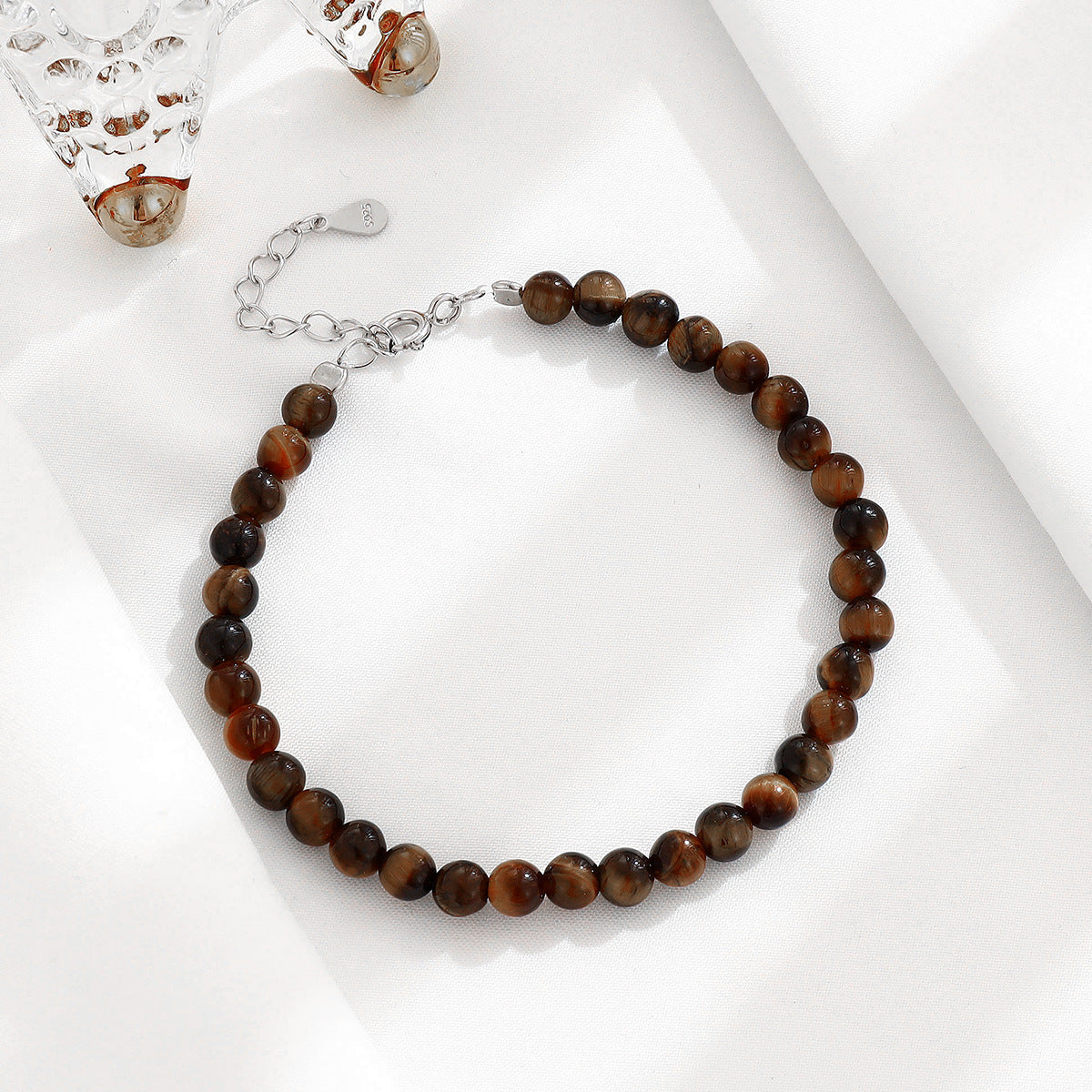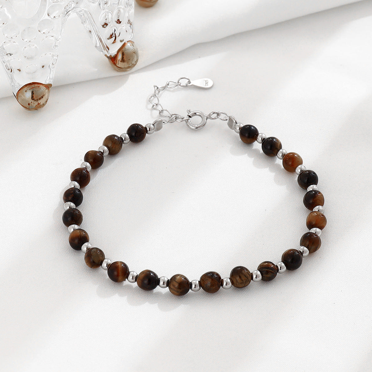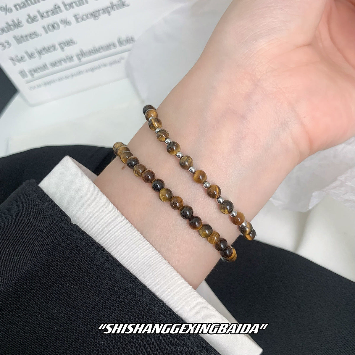 Women's Sterling Sier Tigereye Sliver Beads Temperamental Minority Bracelets
