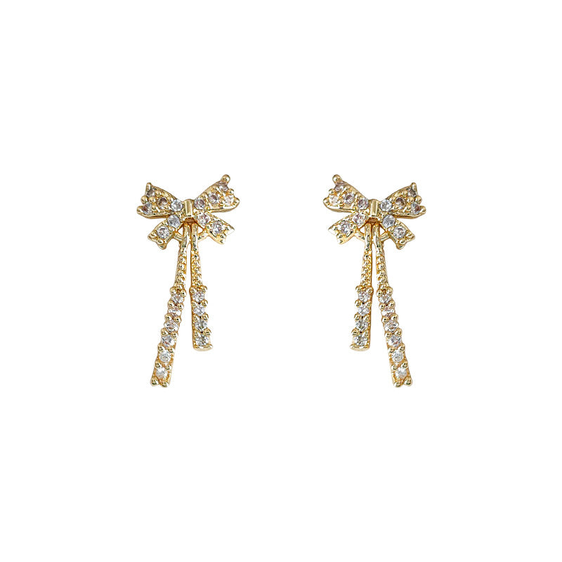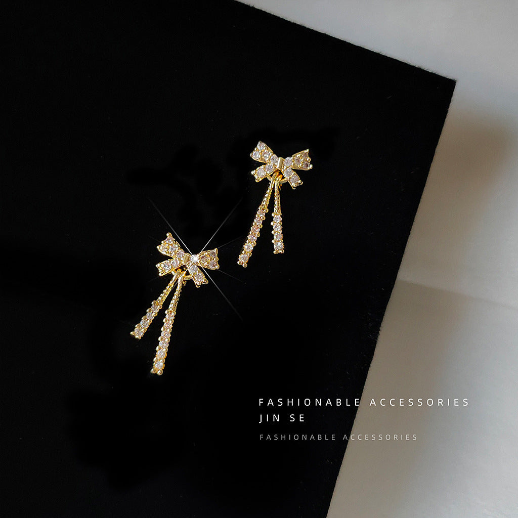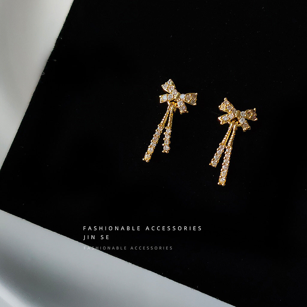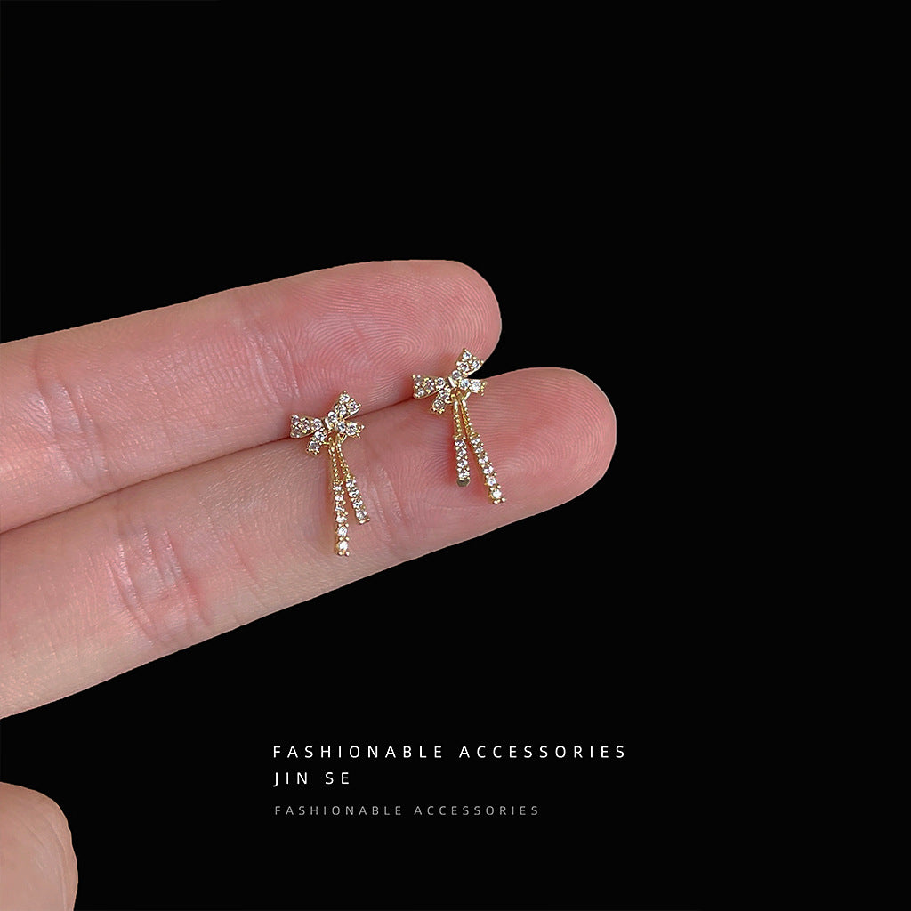 Zircon Sier Needle Plated Bow Simple And Elegant Earrings