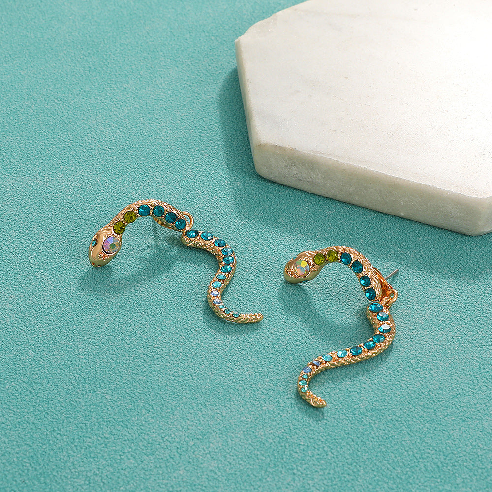 Zodiac Snake Shape Colorful Crystals Fashion Earrings