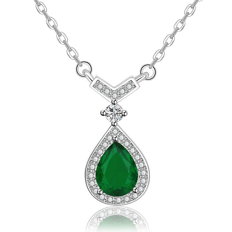 Cool Ocean Blue Drop-shaped Sapphire Pendant Clavicle Chain Necklaces
