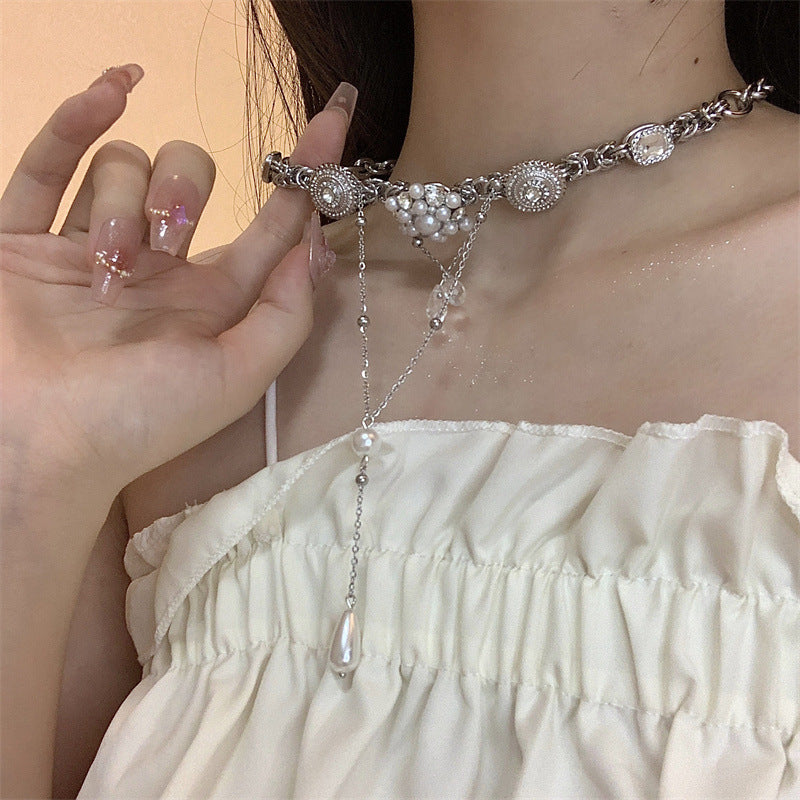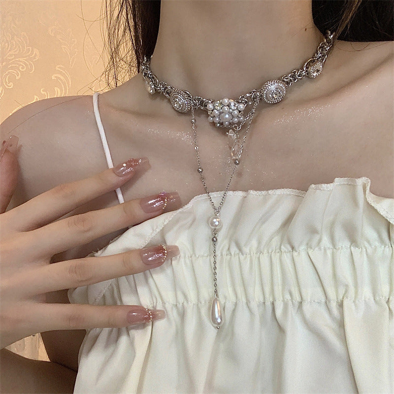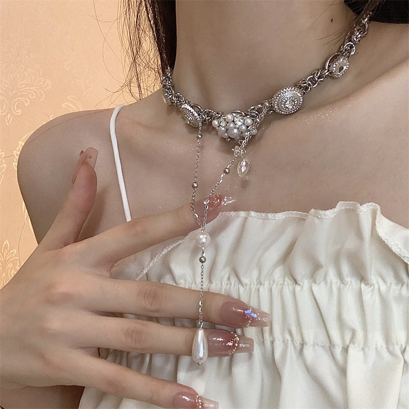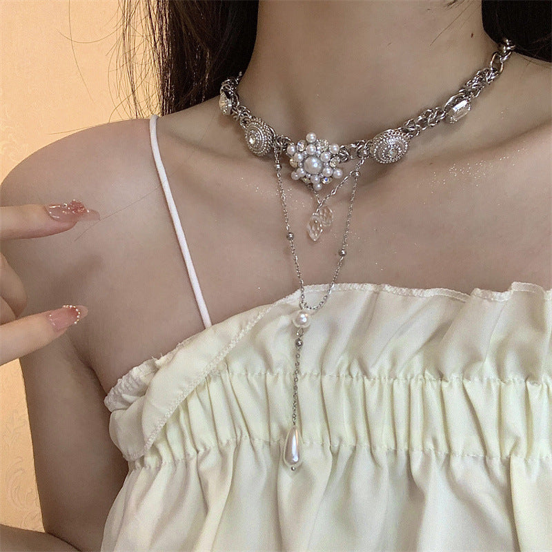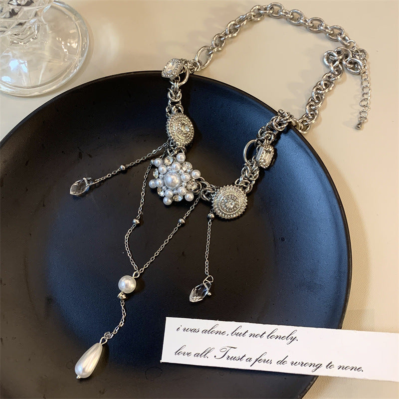 Pearl Flower Water Drop Long Stitching Tassel Niche Retro Necklaces