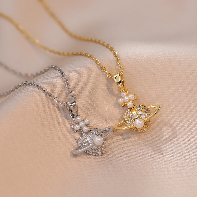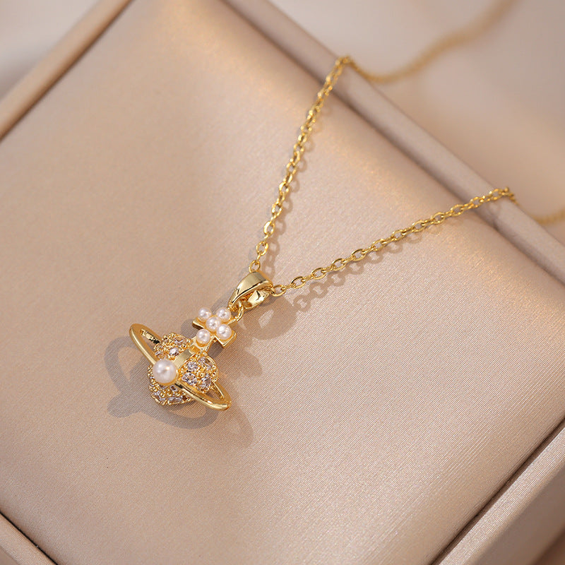 Pearl Niche Retro Mini Full Diamond Personalized Necklaces