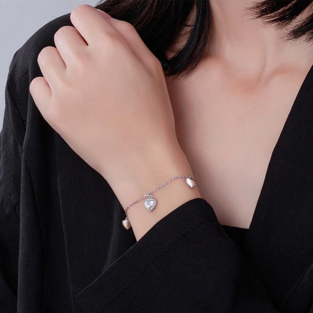 Simple Loving Heart In Sterling Sier Female Niche Design Bracelets