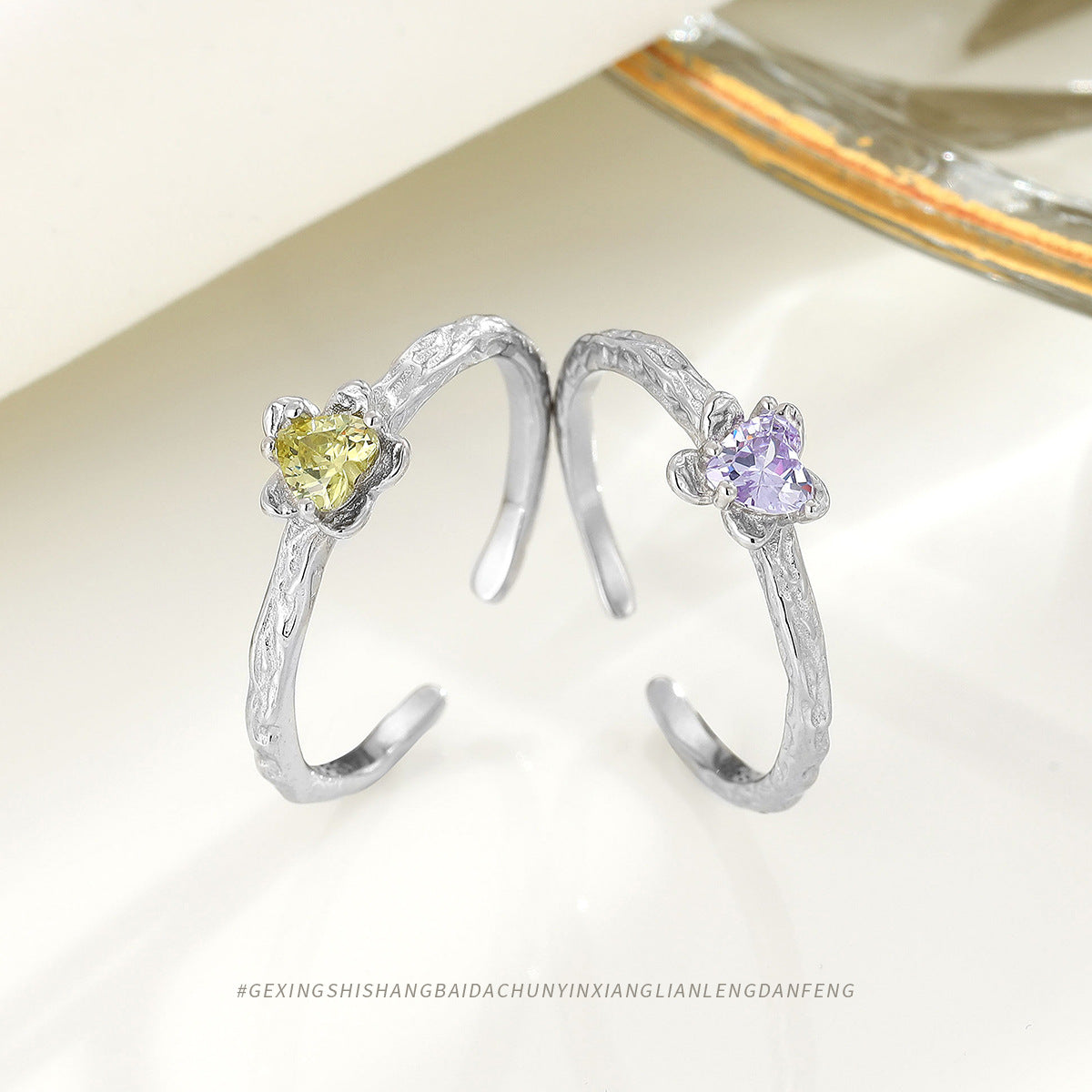 Women's Sier Zircon Flower Temperamental Minority High-grade Rings