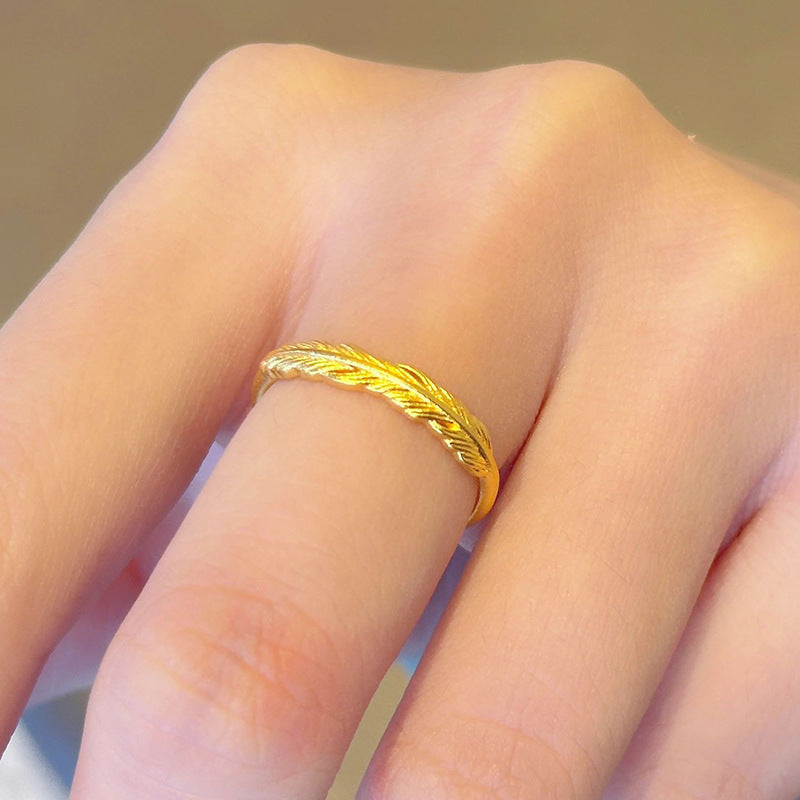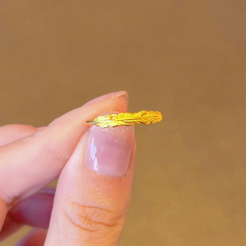 Women's Simple Golden Feather For Niche Temperament Rings