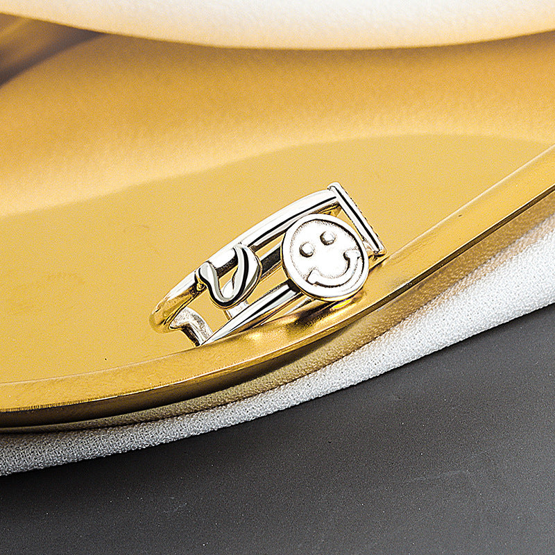 Women's Simple Smiley Fashion Jewelry Open Double Layer Rings