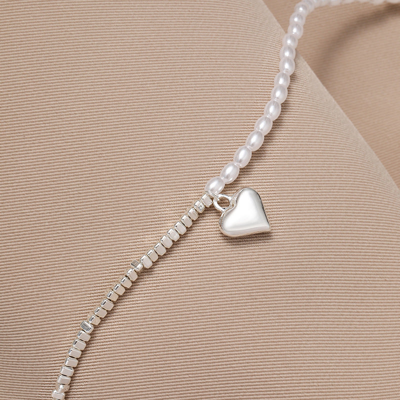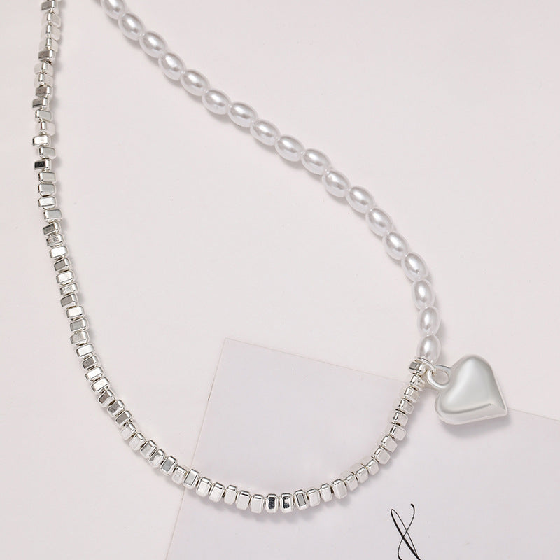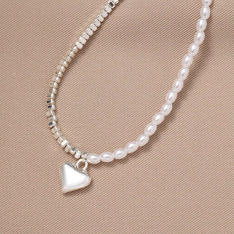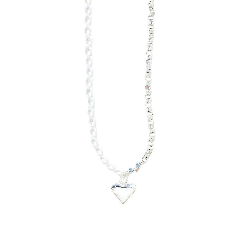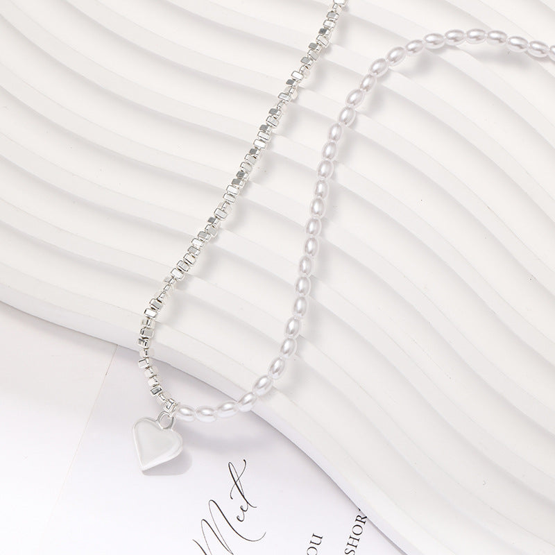 Women's Small Pieces Of Sier Pearl Heart Necklaces