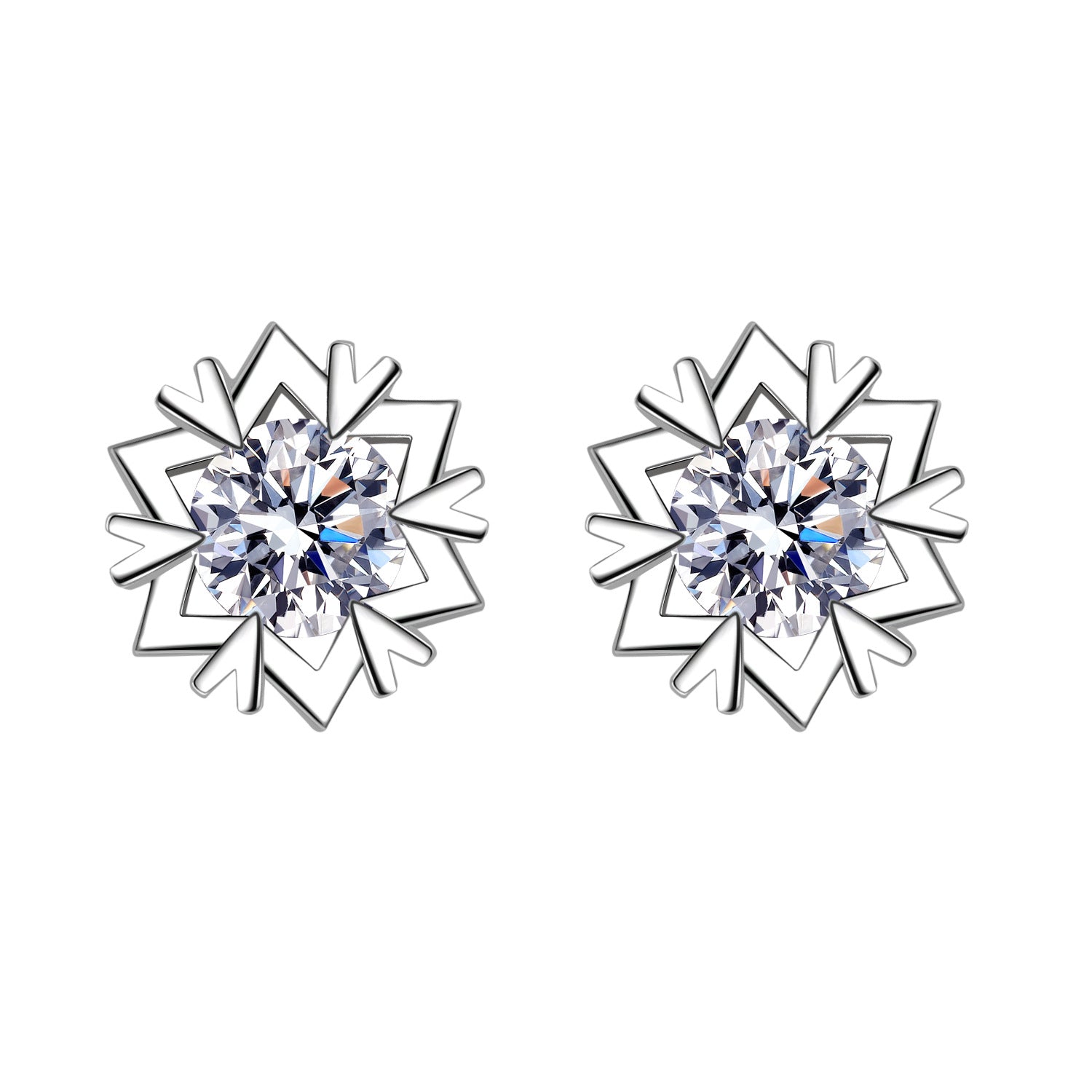 Women's Snowflake Ear Fashion Sier-plated Simple Zircon Earrings
