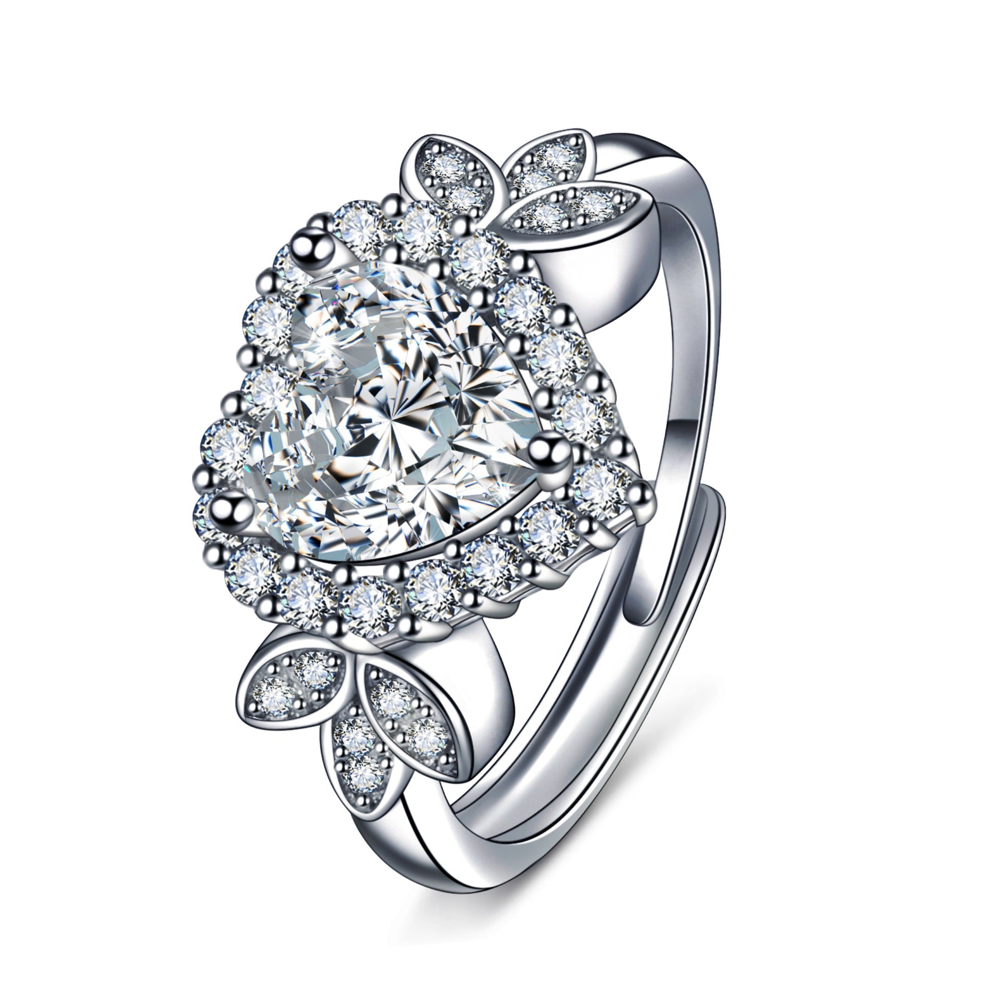 Women's Sparking Zirconium Heart-shaped Rhinestone Design Fashion Temperament Korean Rings