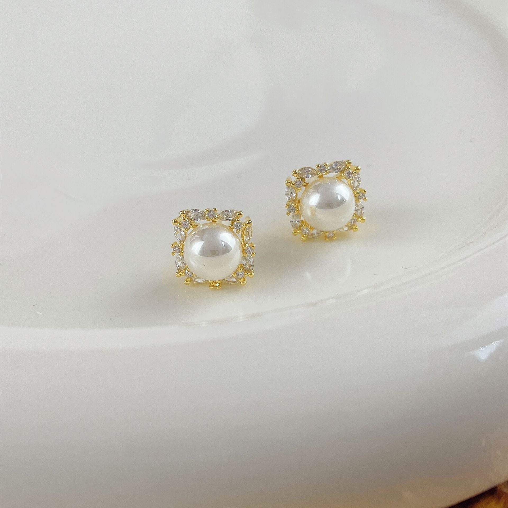 Color: D1920 Square Zircon Pearl Earrings